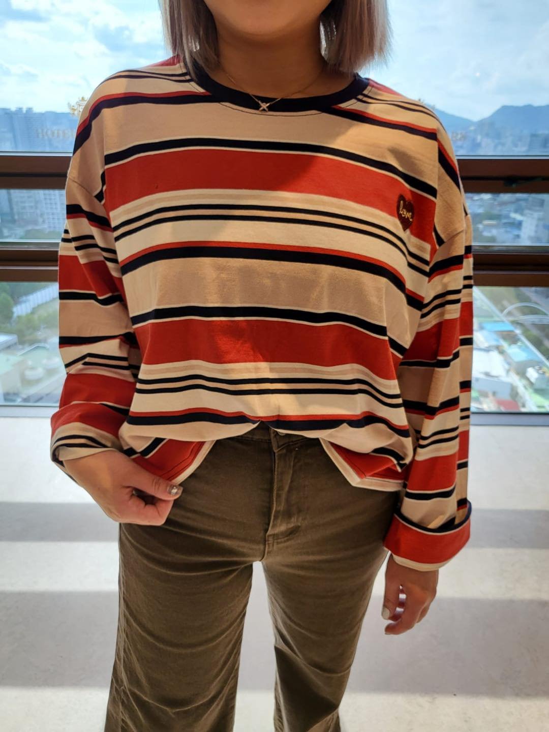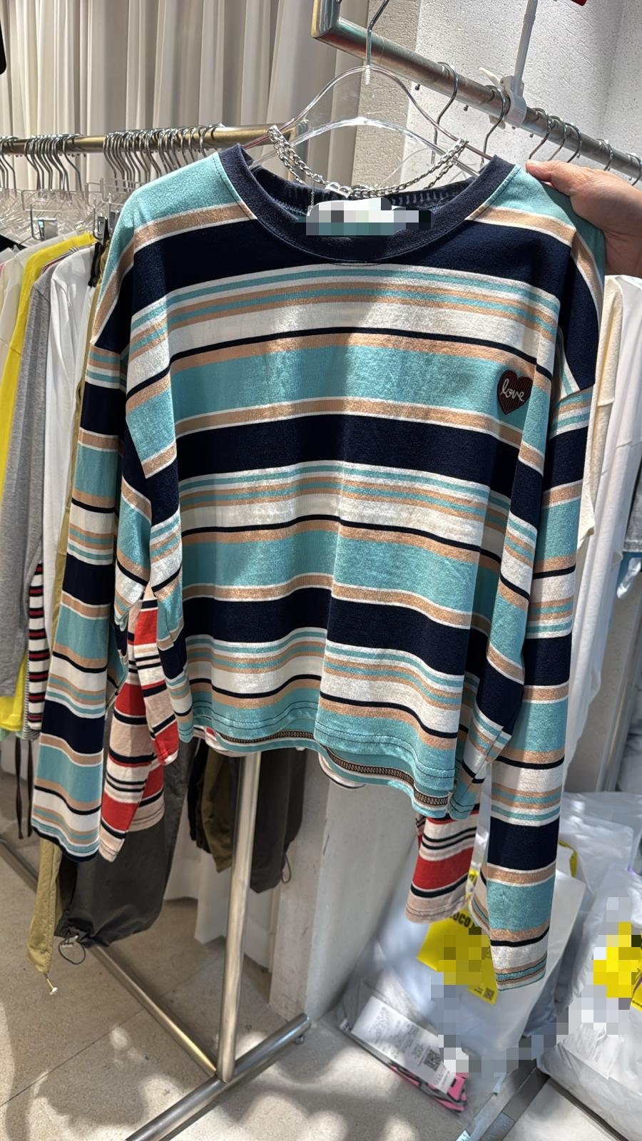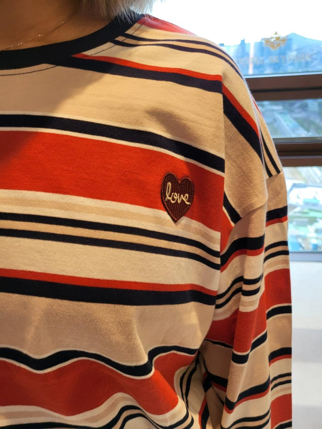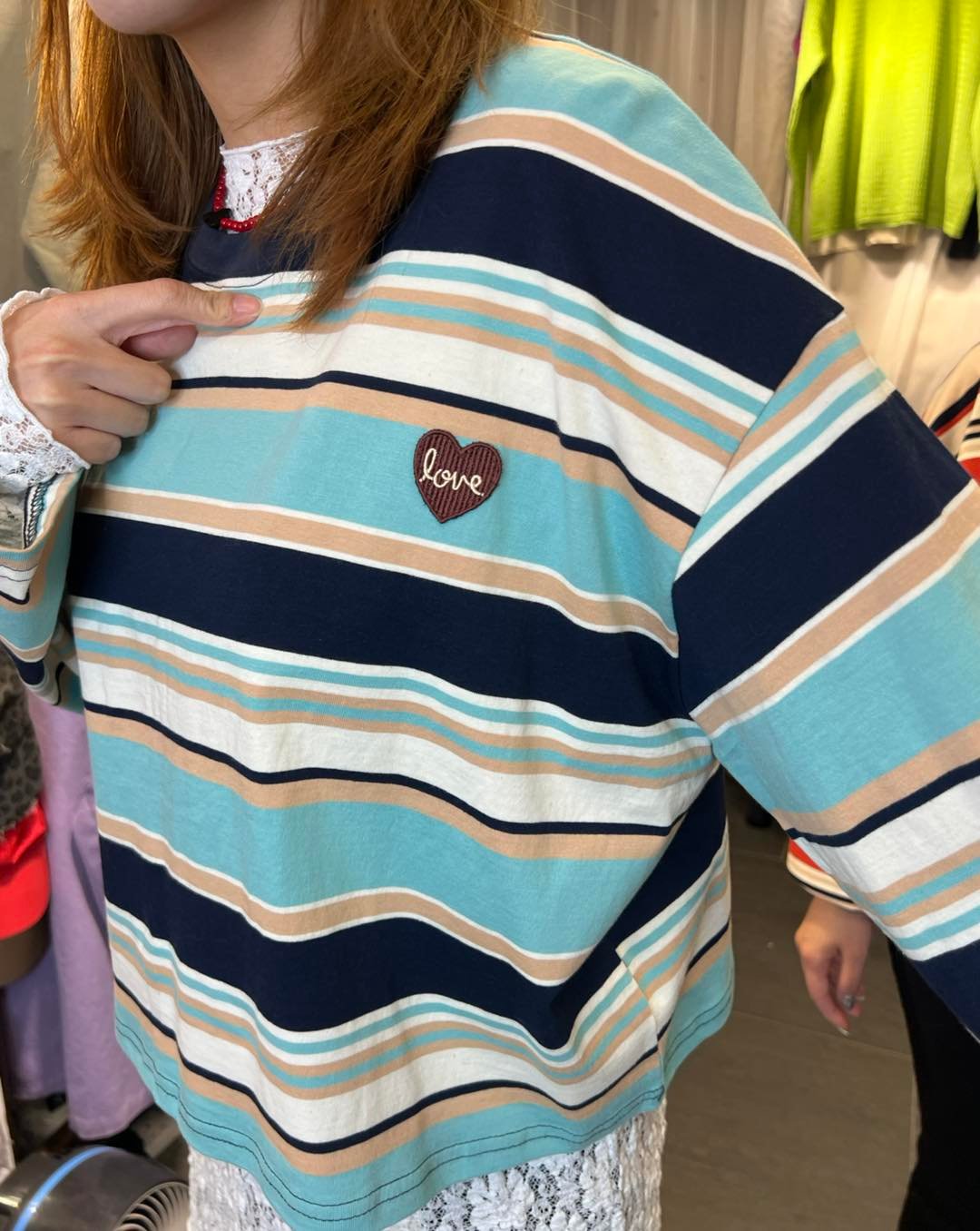 #6412 秋季心心繡花條子棉料TEE