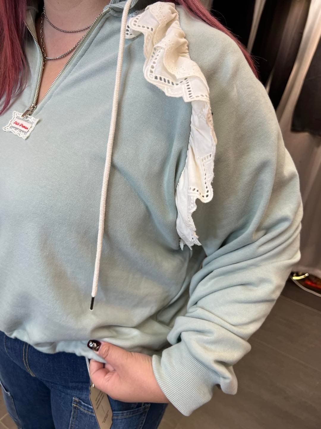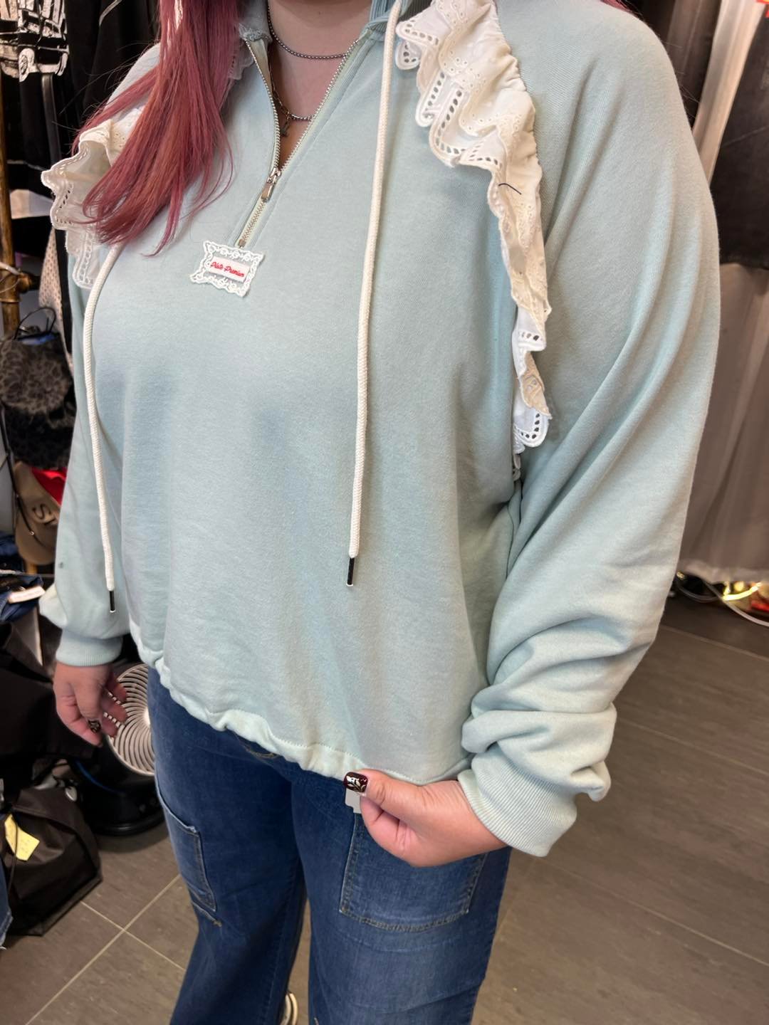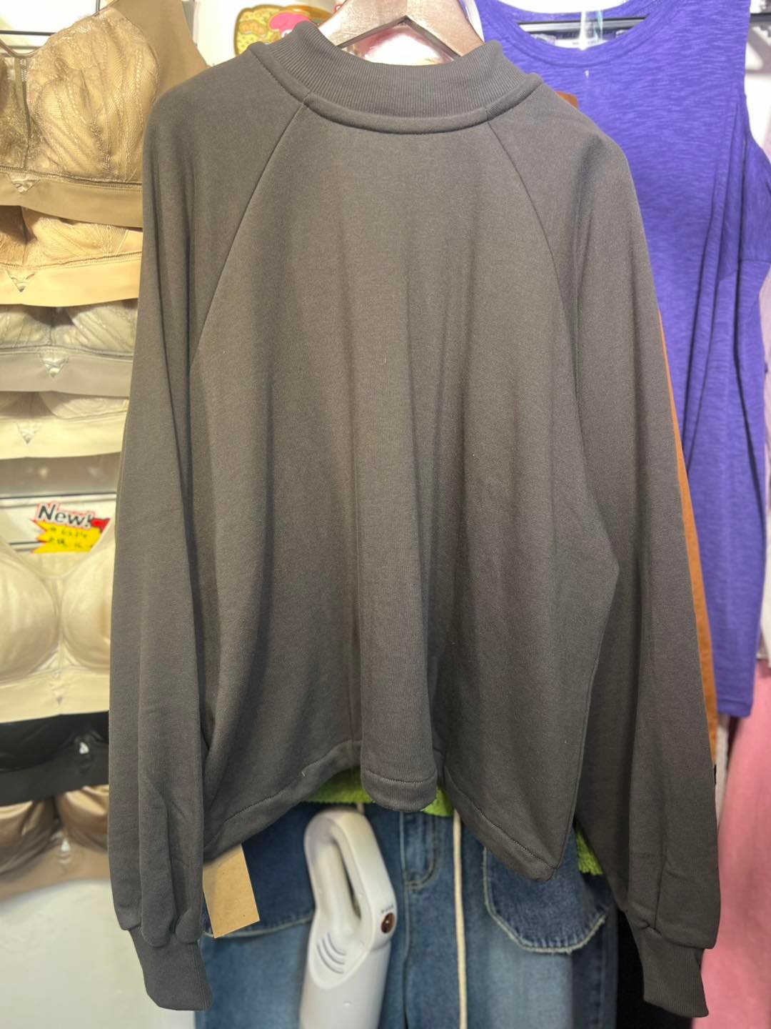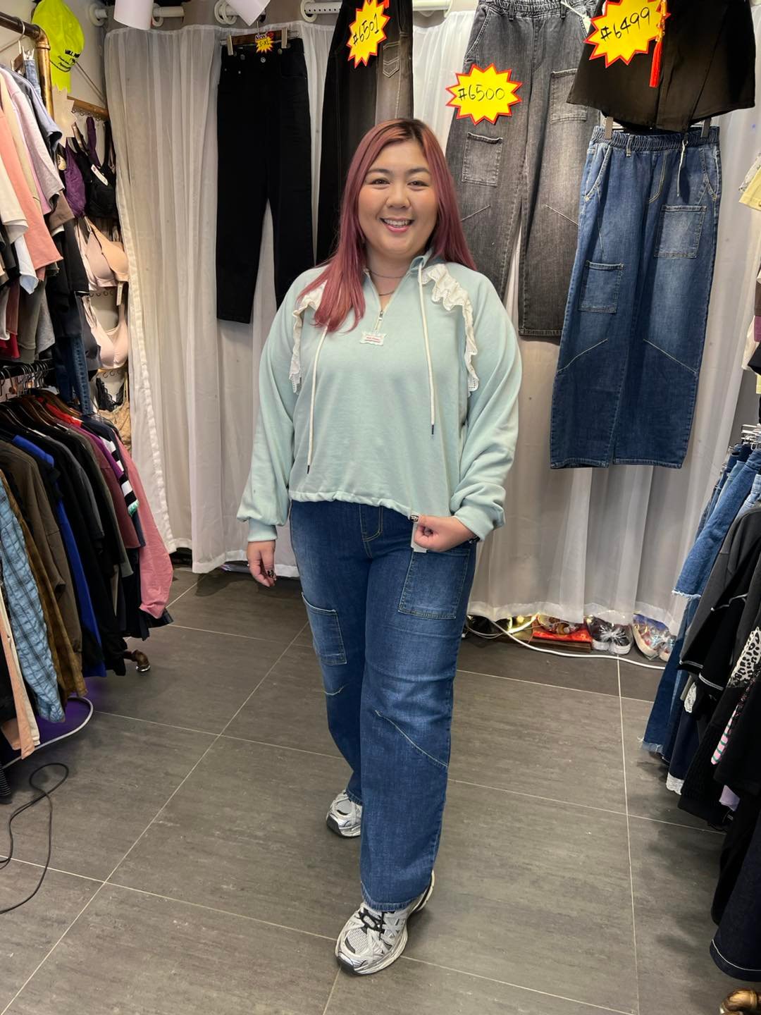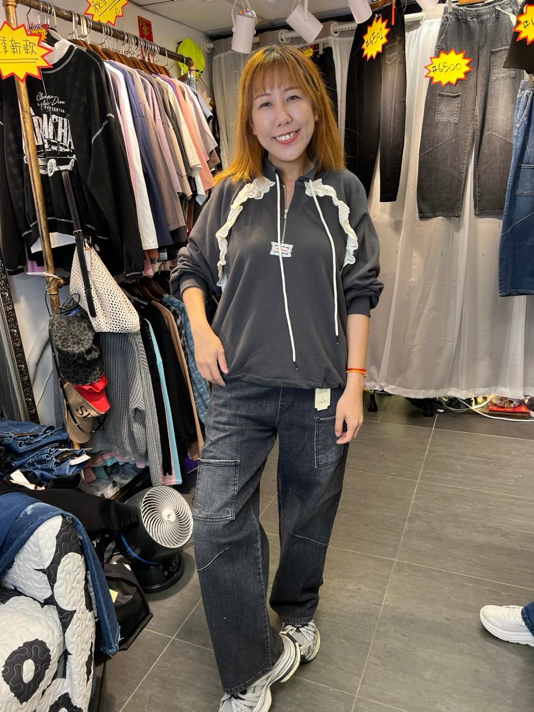 #6491 秋季牛角袖拼波浪通花邊拉鍊棉料衛衣