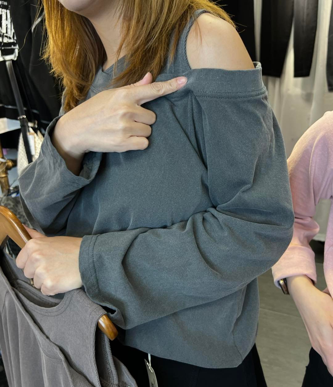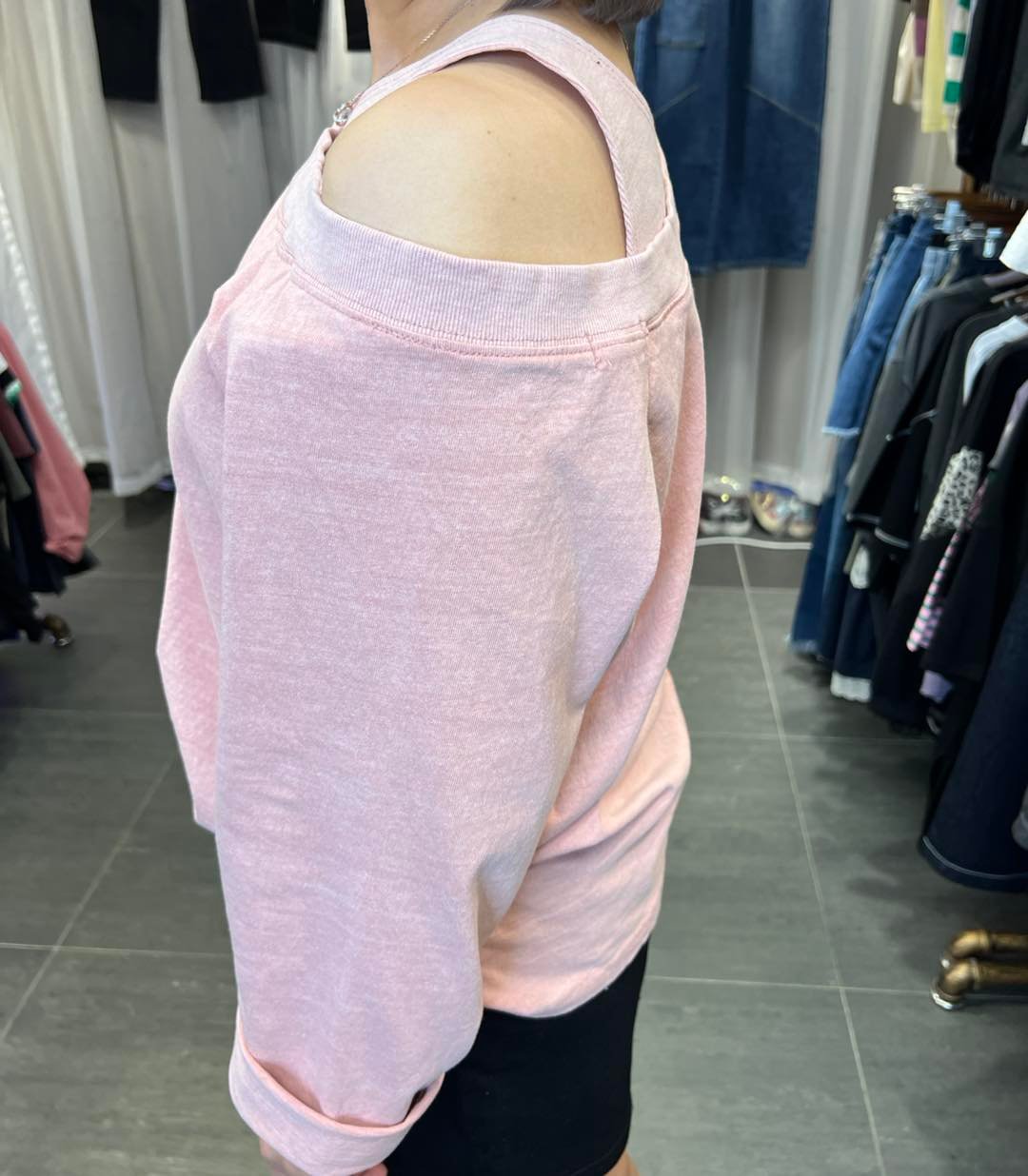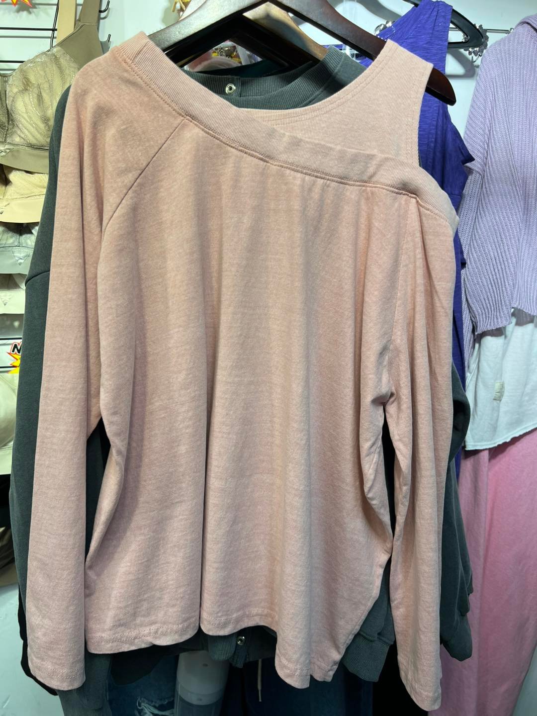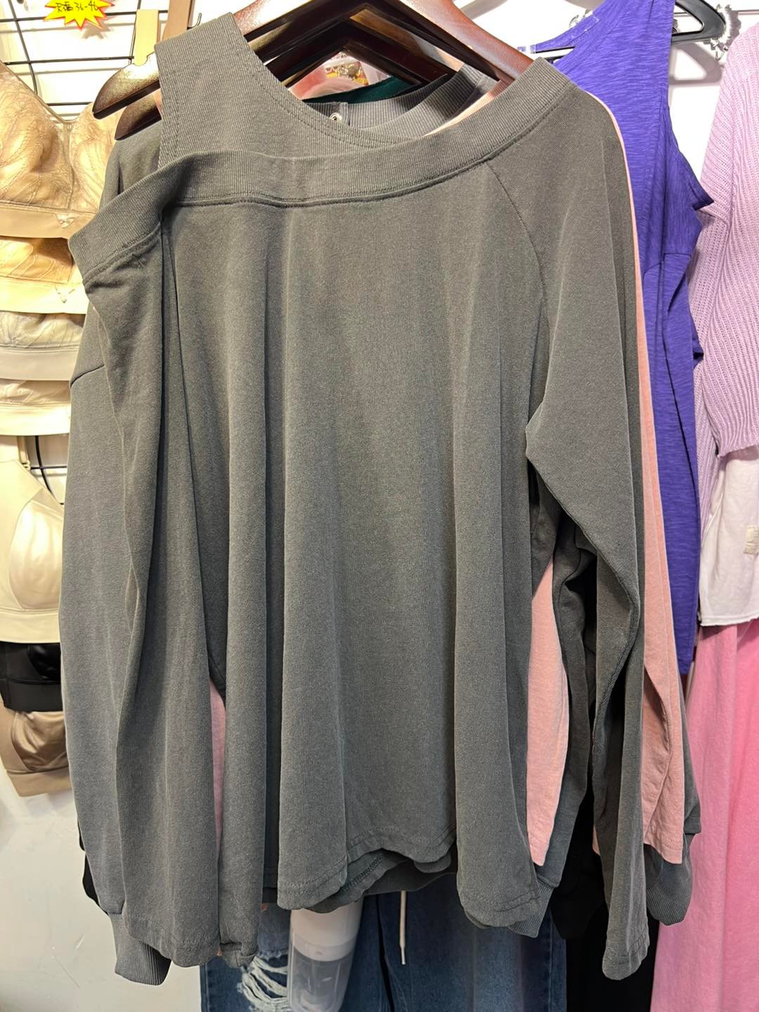 #6497 秋季單邊露膊洗水棉料TEE