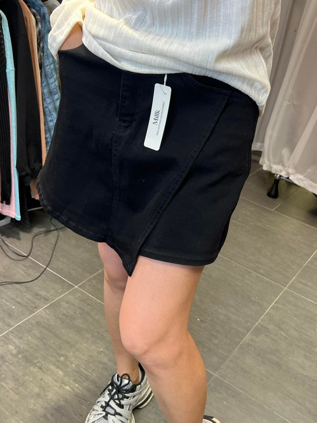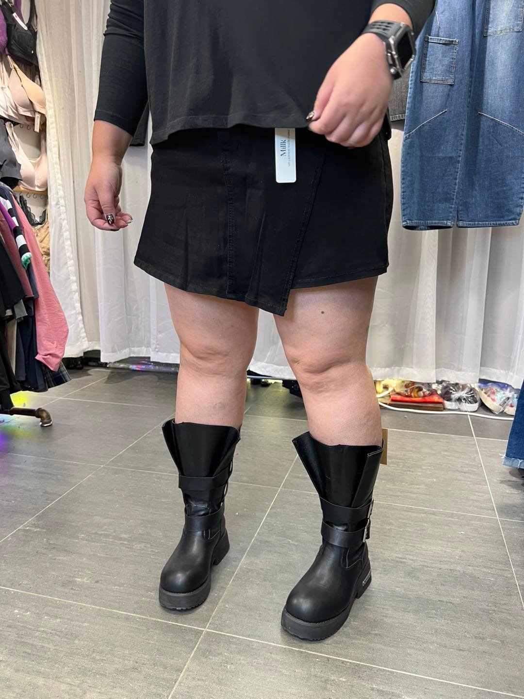 #6499 秋季黑色牛奶料裙褲 (獨家款) (S-3XL)