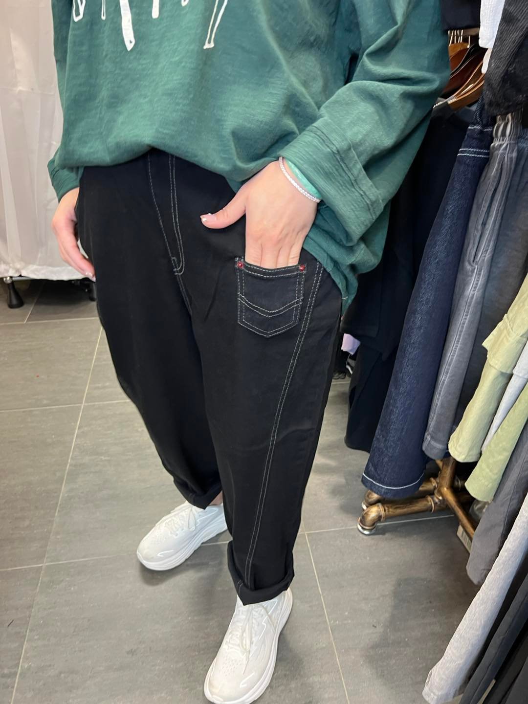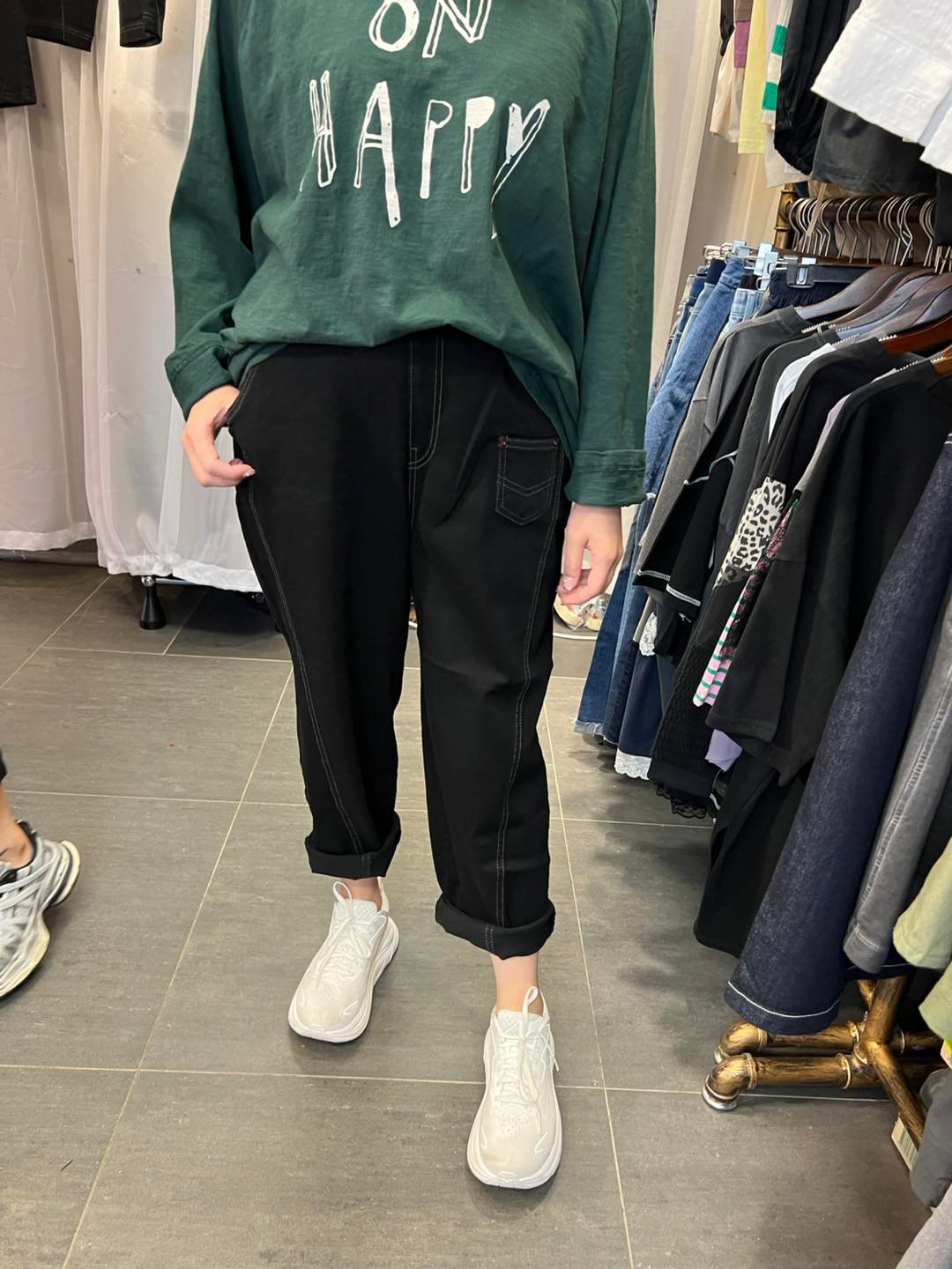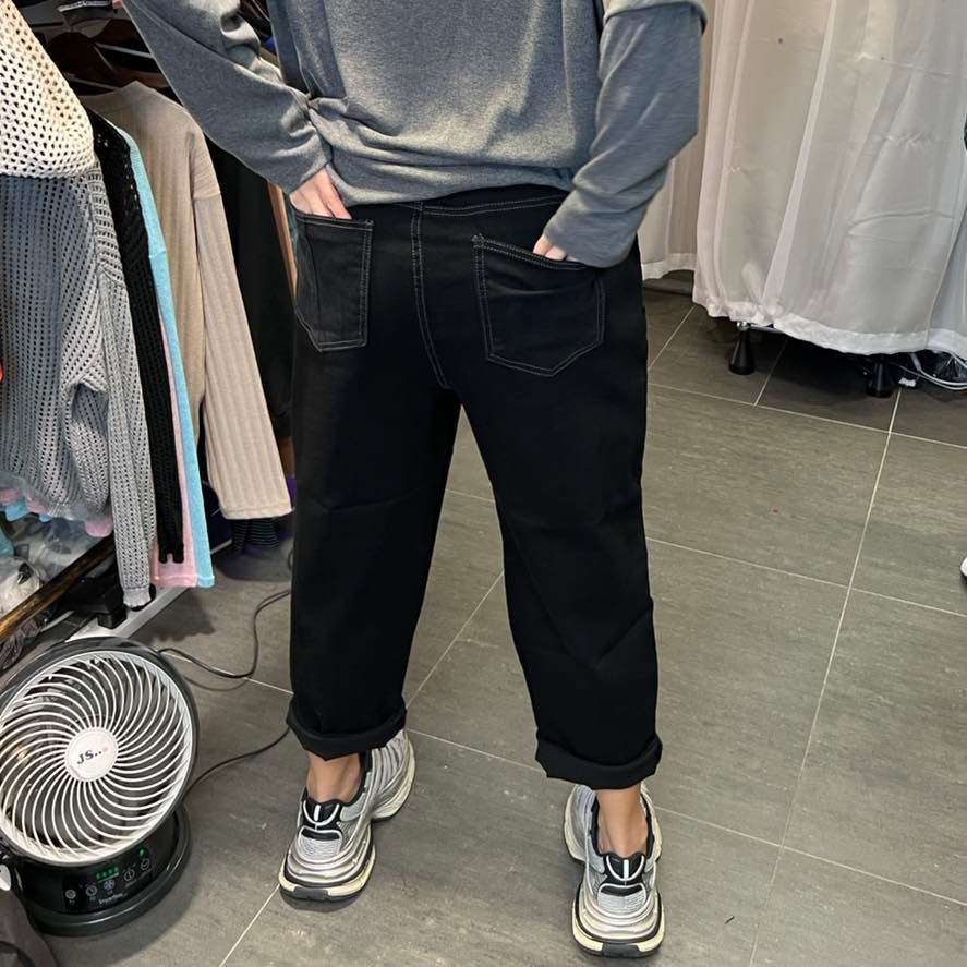 #6501 秋季黑色牛奶料明線雙骨蘿蔔形牛仔褲 (獨家款)