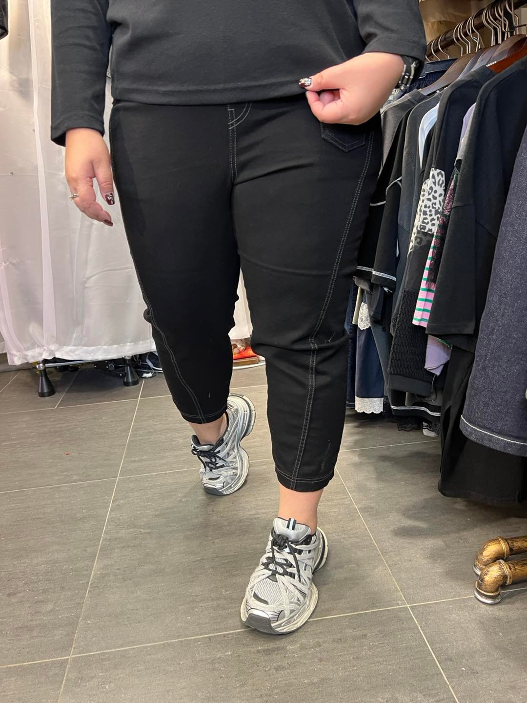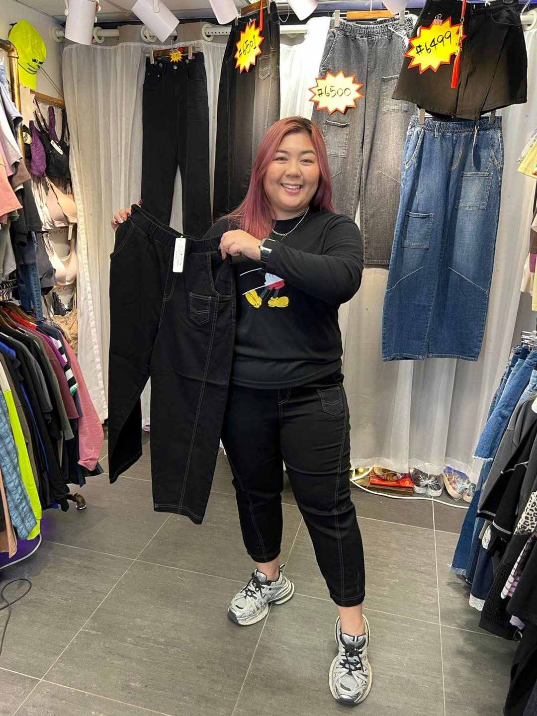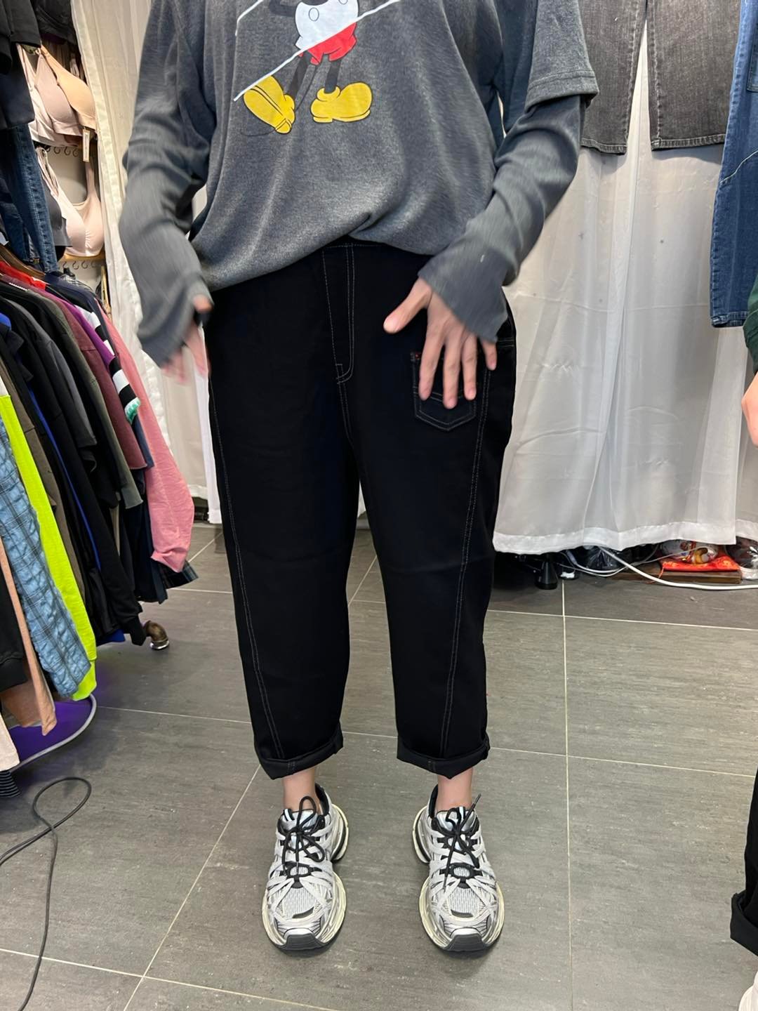 #6501 秋季黑色牛奶料明線雙骨蘿蔔形牛仔褲 (獨家款)