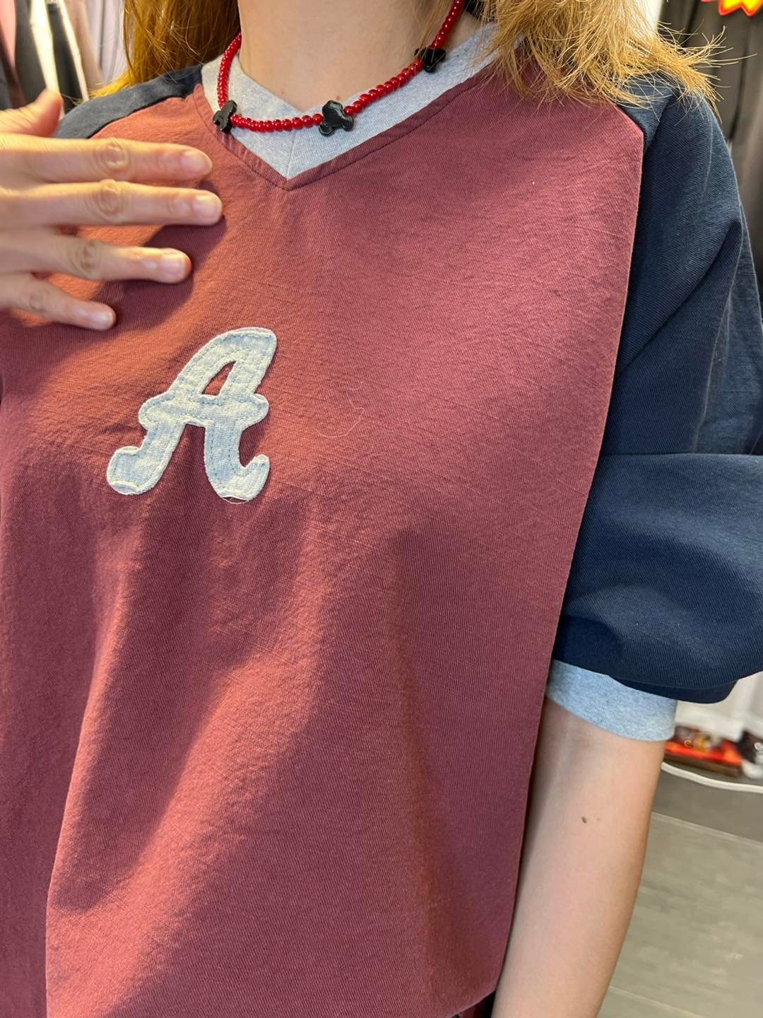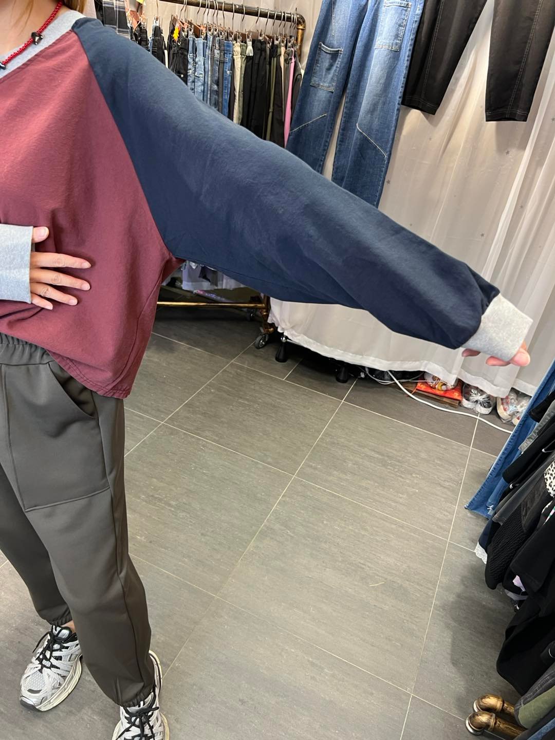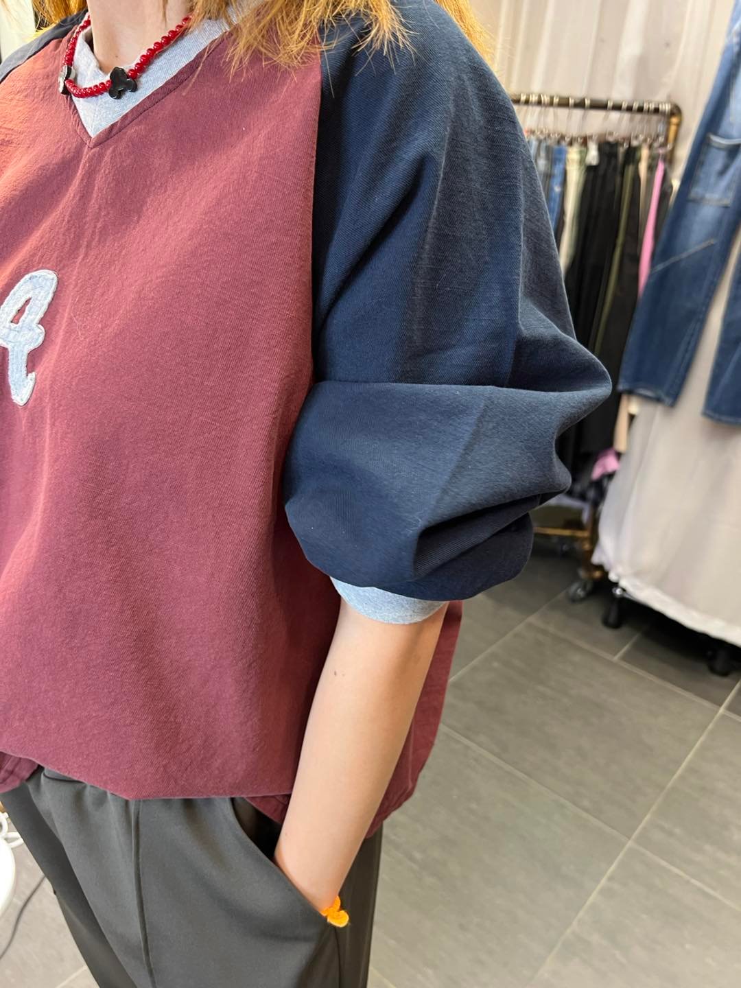 #6506 秋季”A” 字繡花扯布拼色上衣