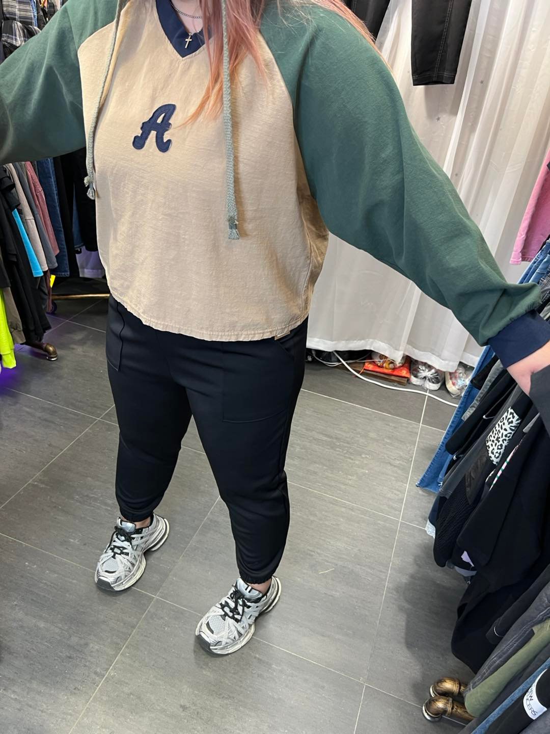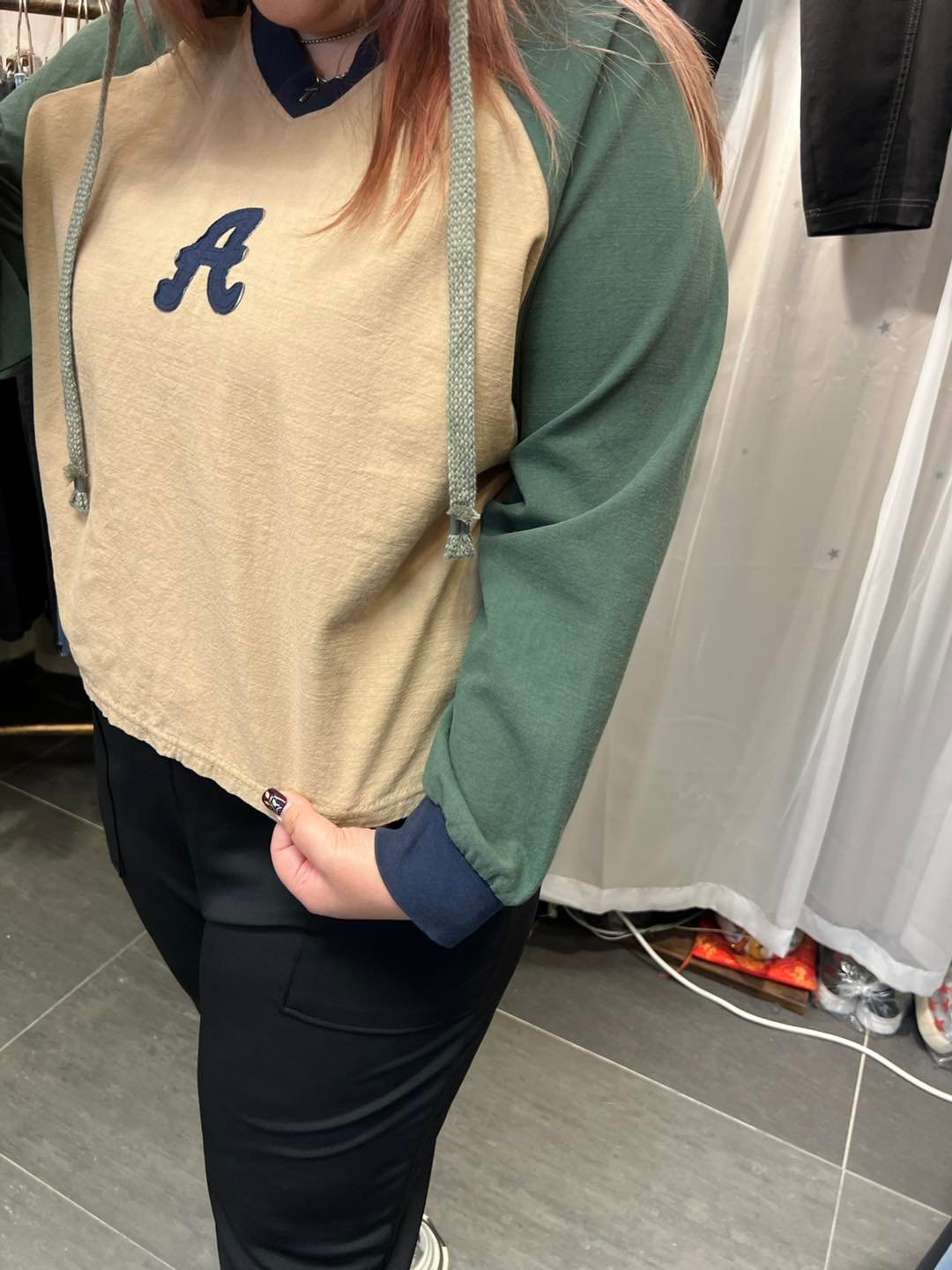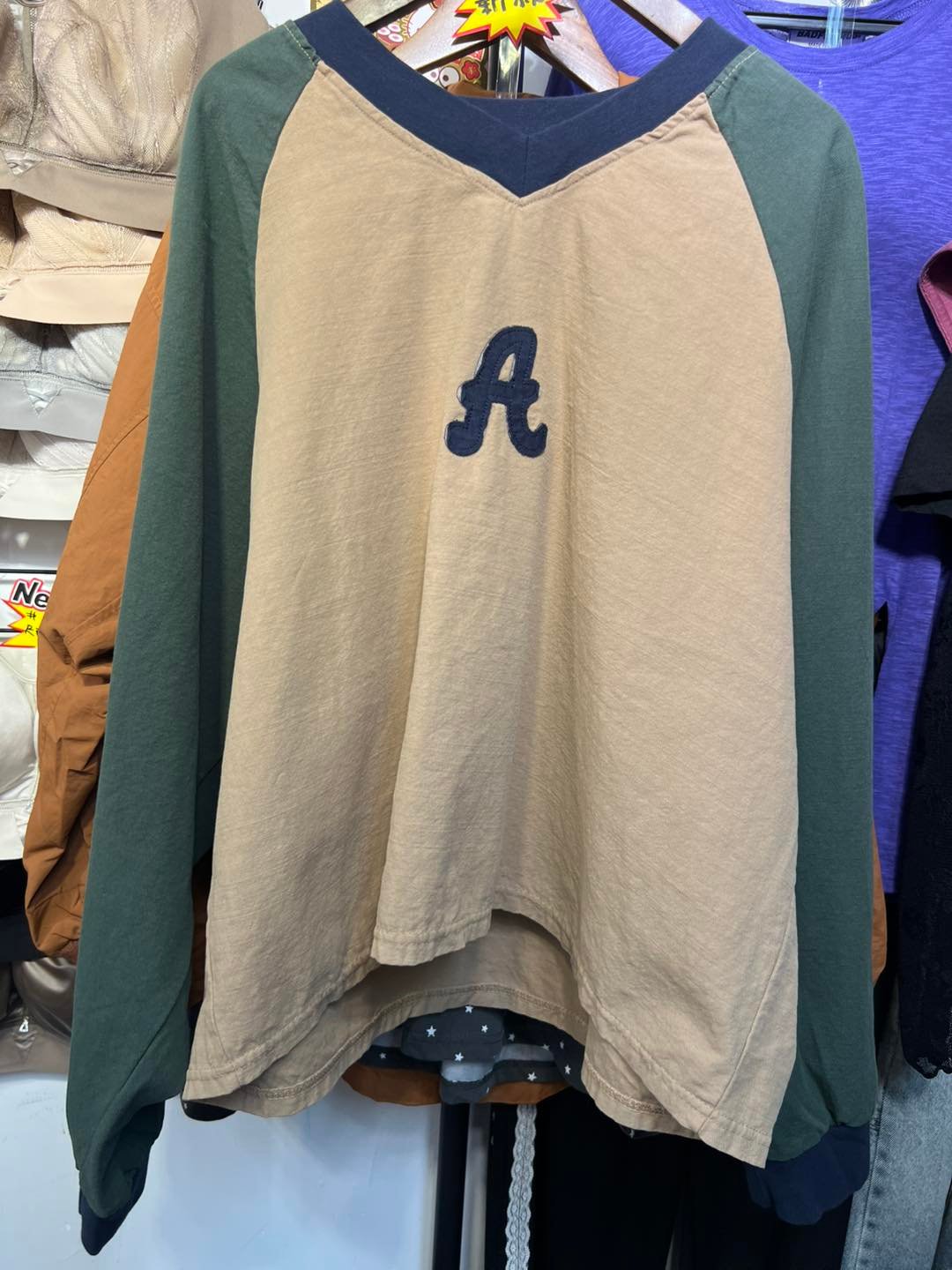 #6506 秋季”A” 字繡花扯布拼色上衣