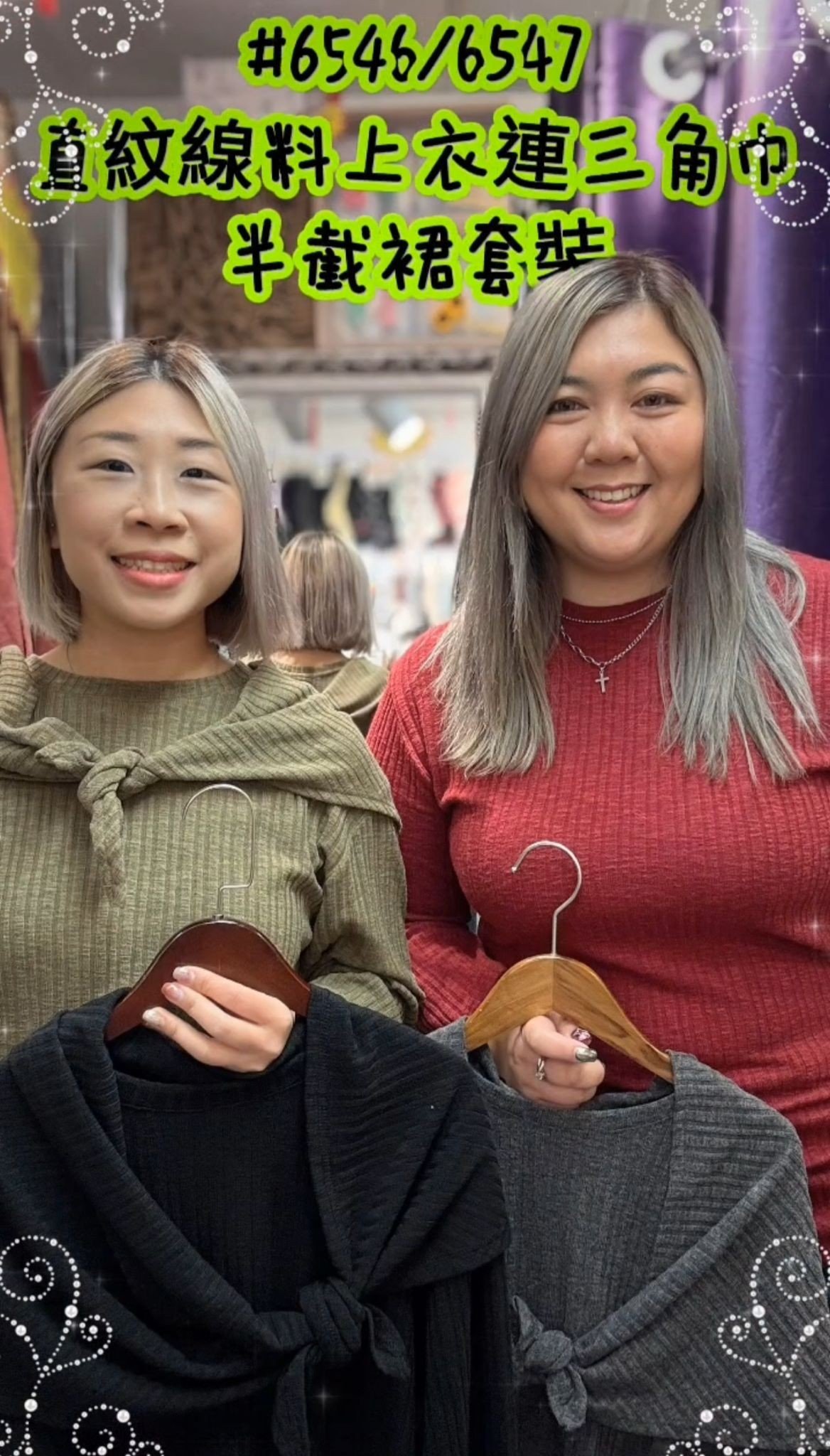 #6546/6547 秋季直紋線料上衣連三角巾/半截裙套裝