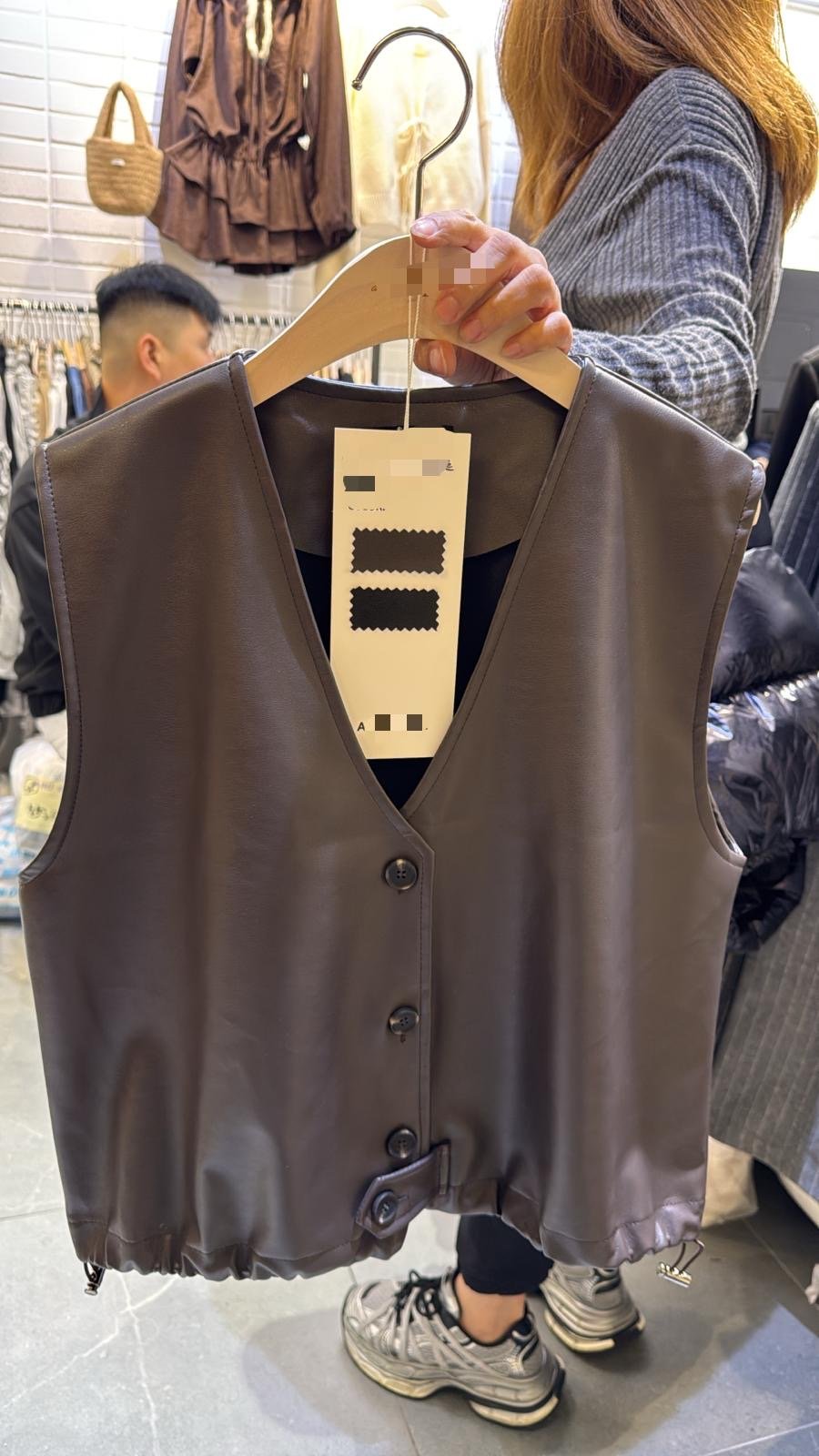 #6556 秋季啡色仿皮背心外套