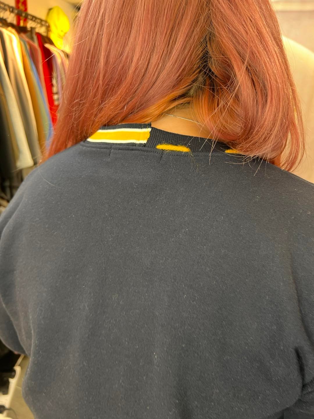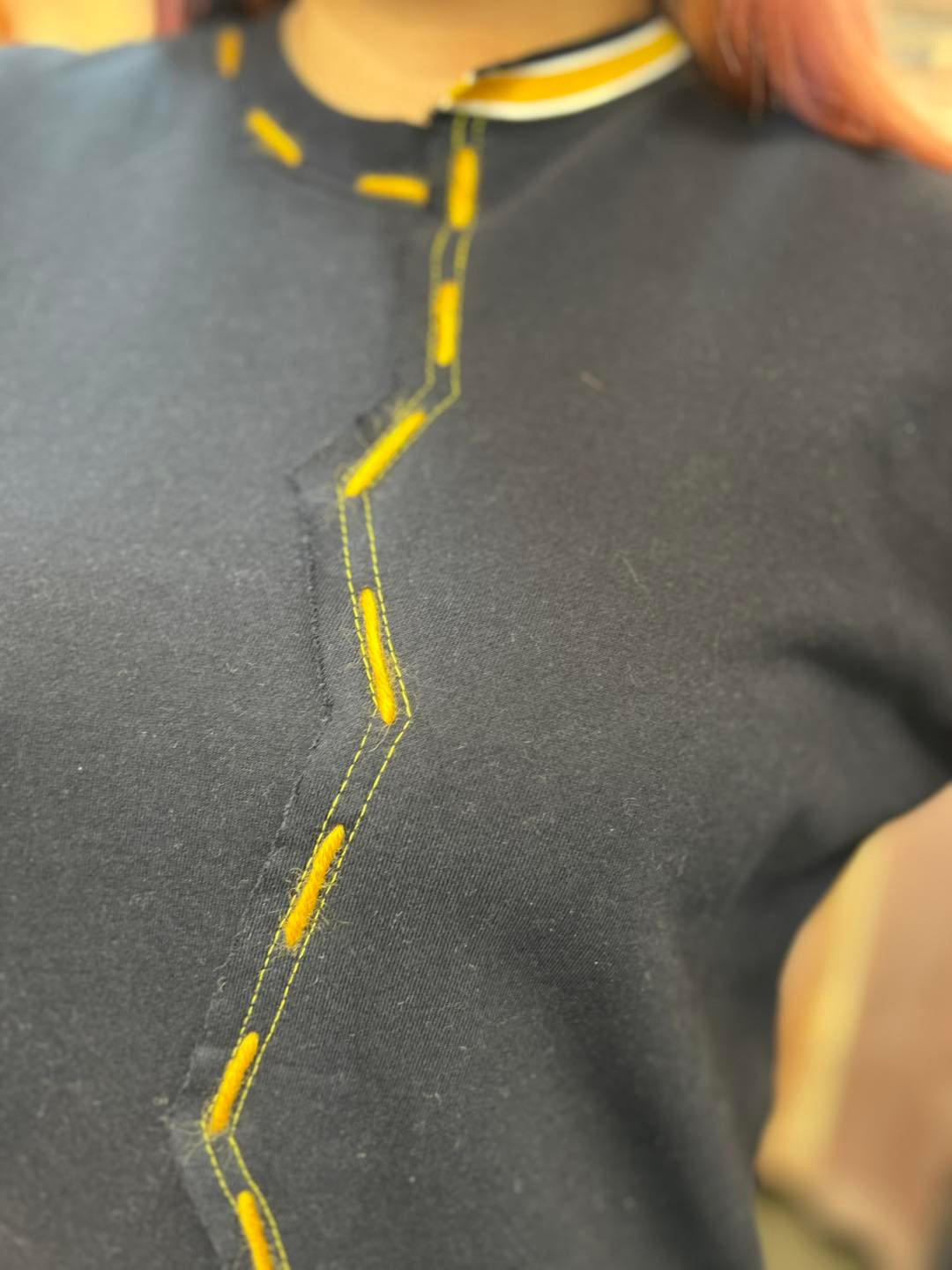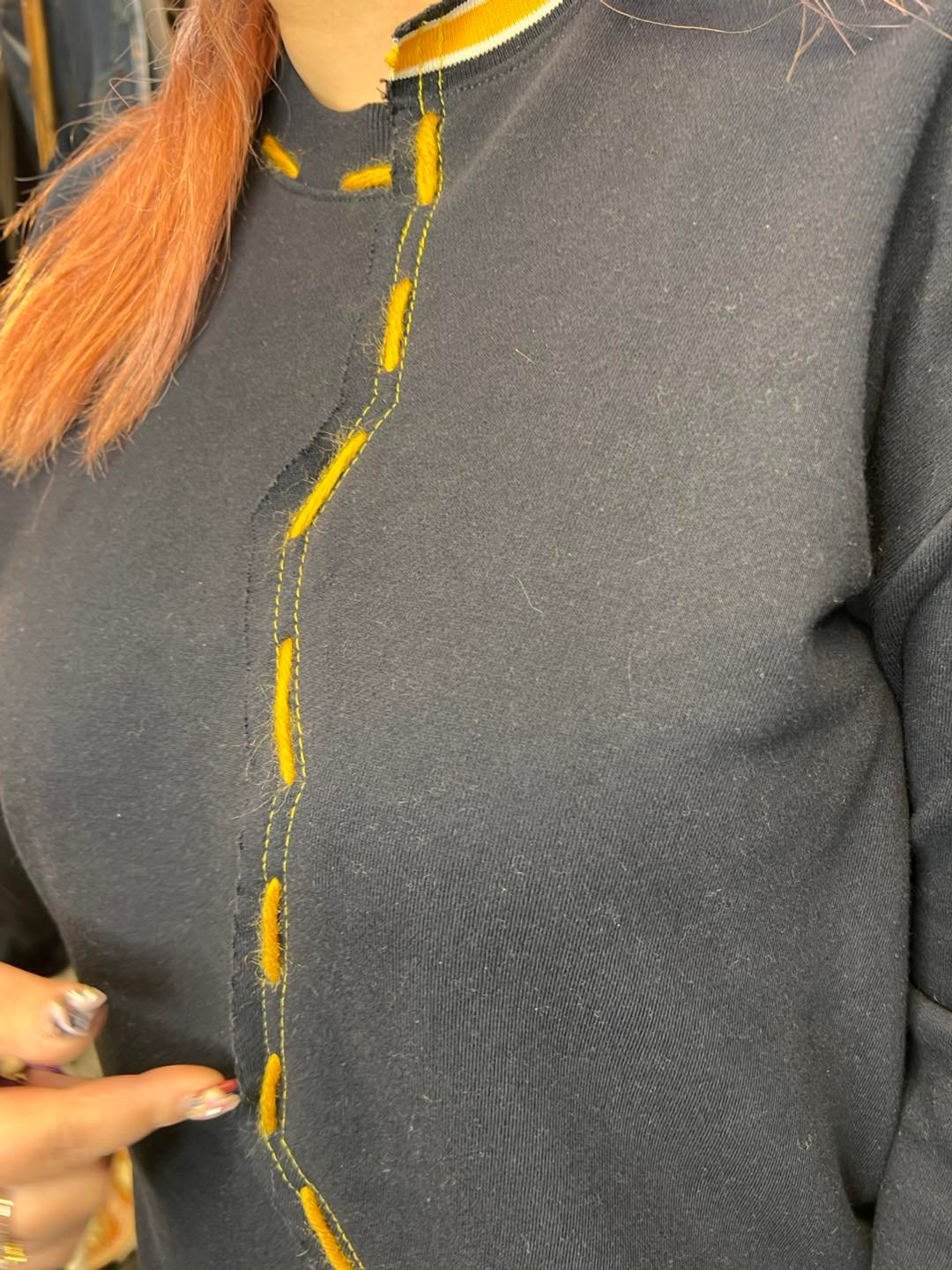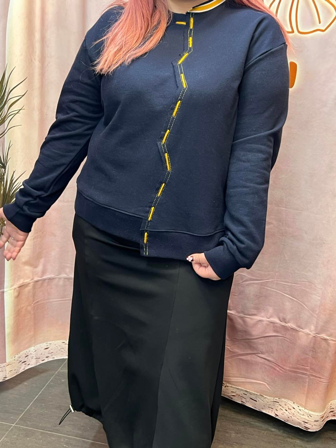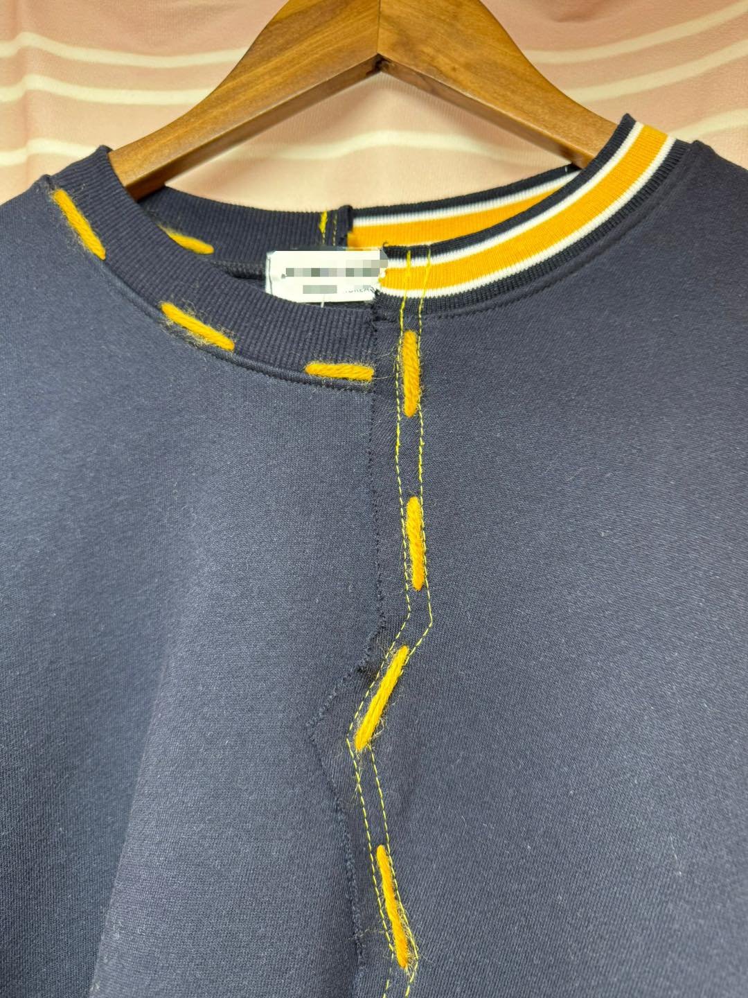 #6717 冬季黃色手針線深藍色珠地棉料衛衣