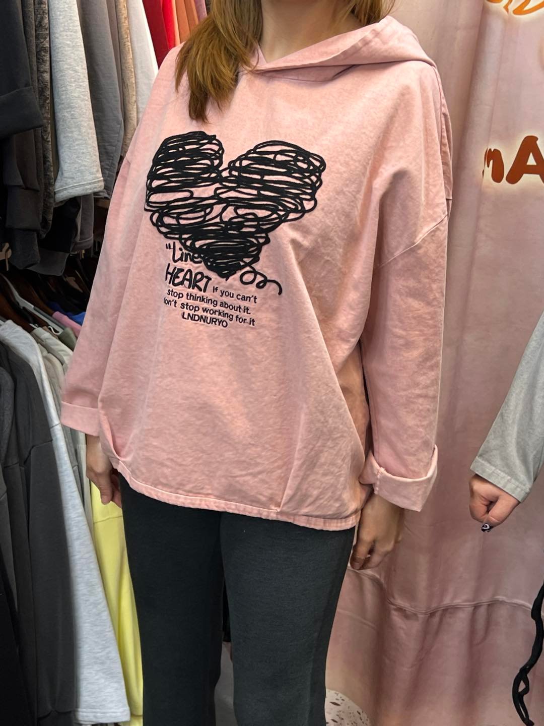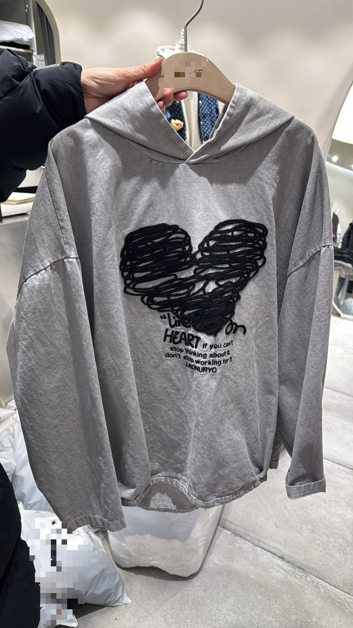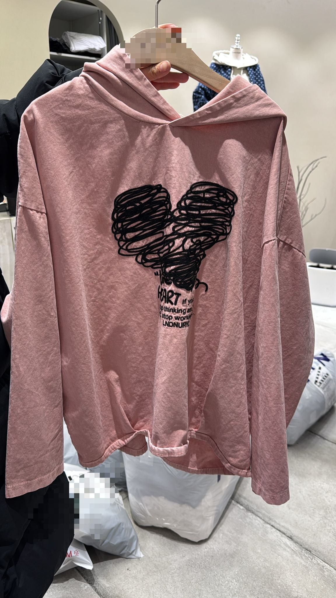 #6726 冬季繡花心心洗水布有帽衛衣
