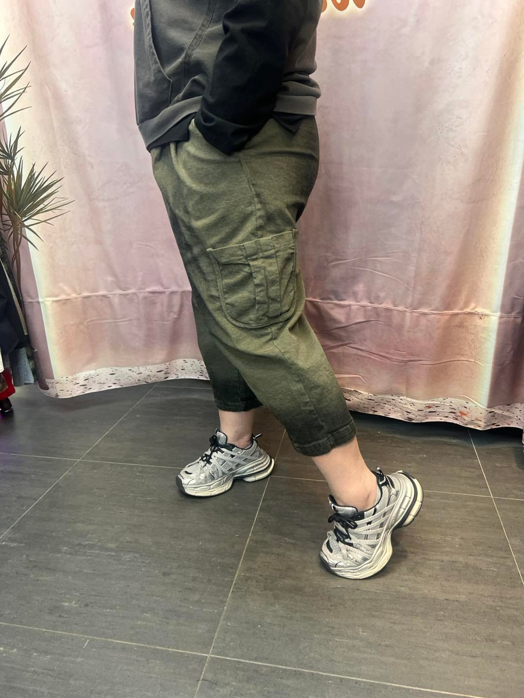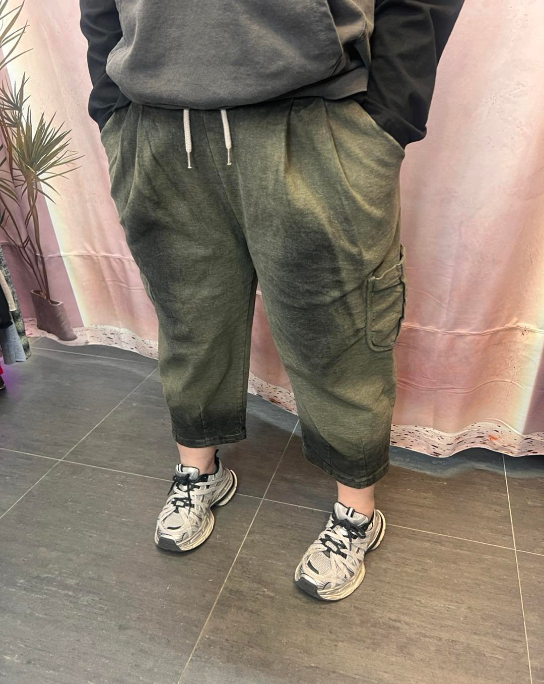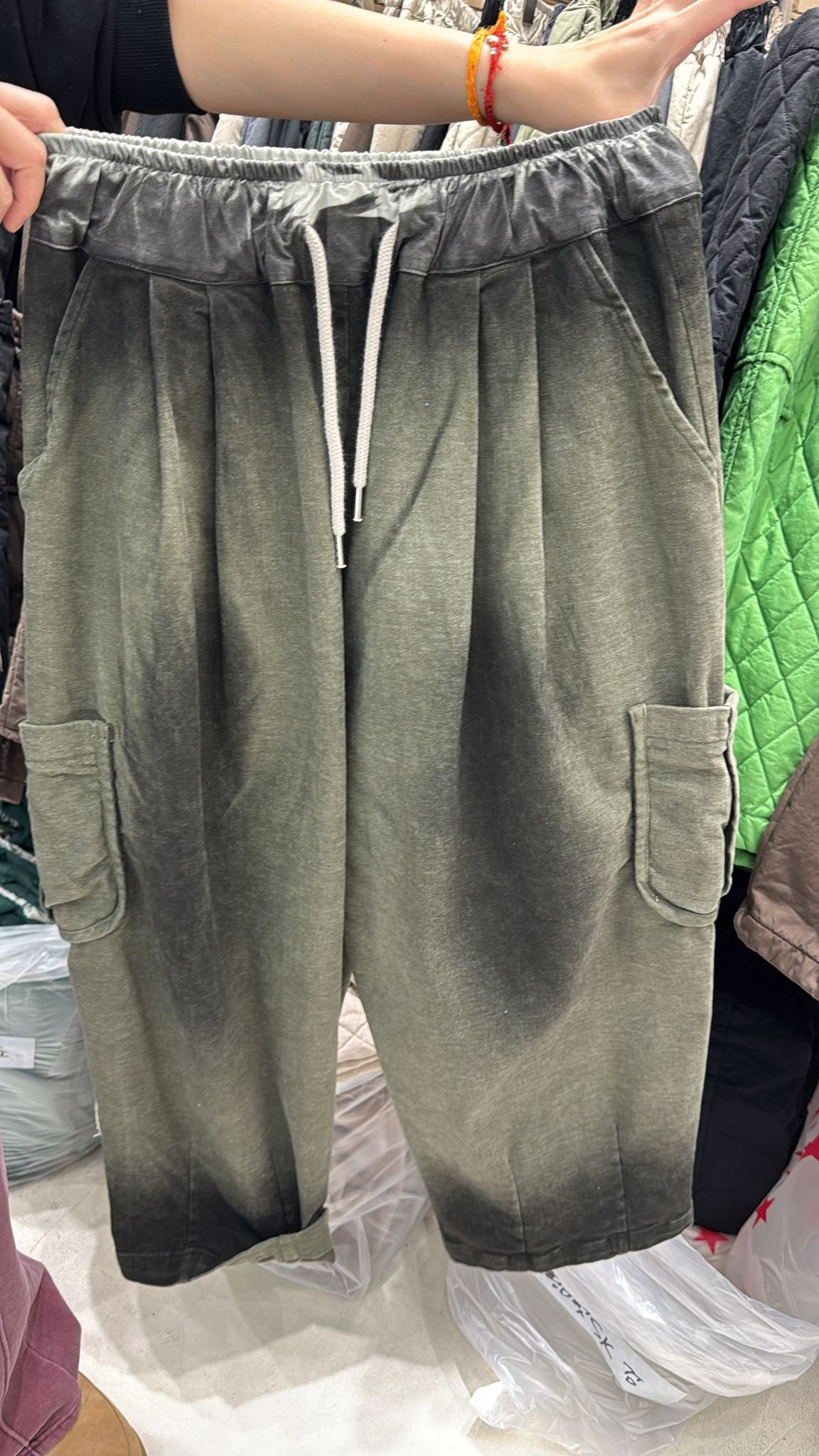 #6729 冬季綠色噴漆蘿蔔形扯布褲