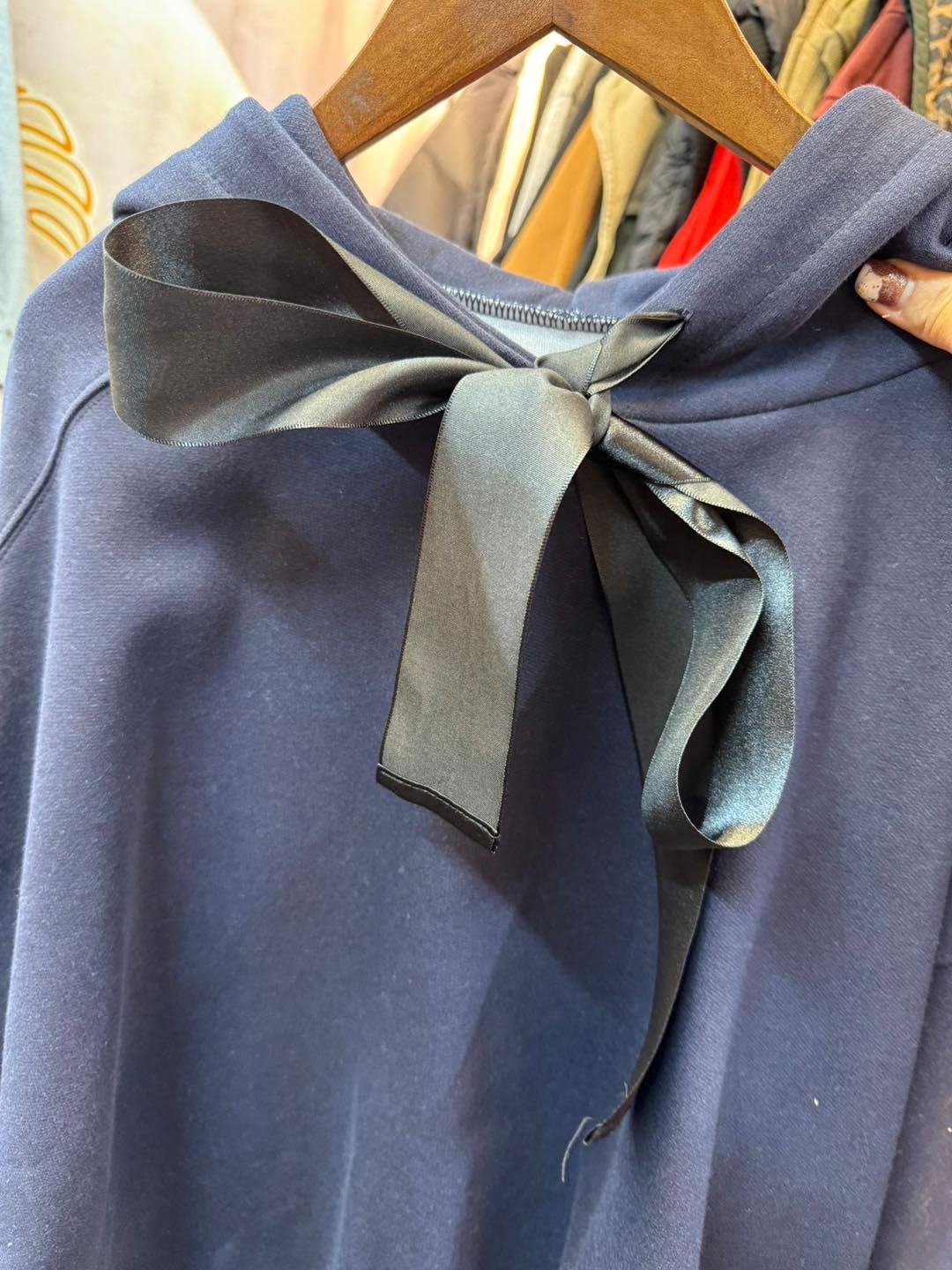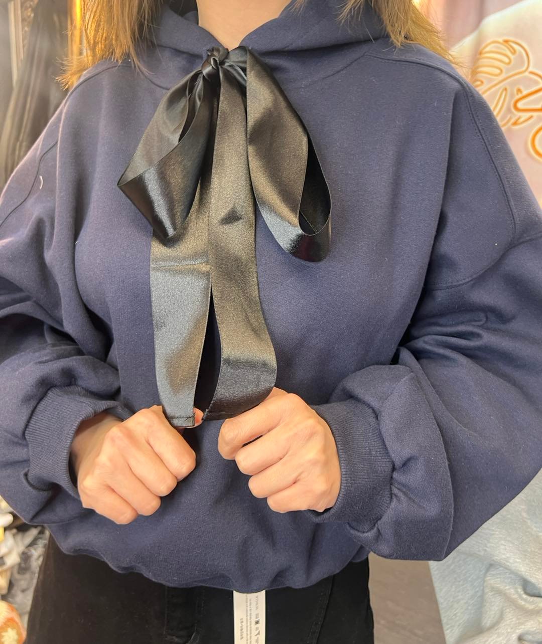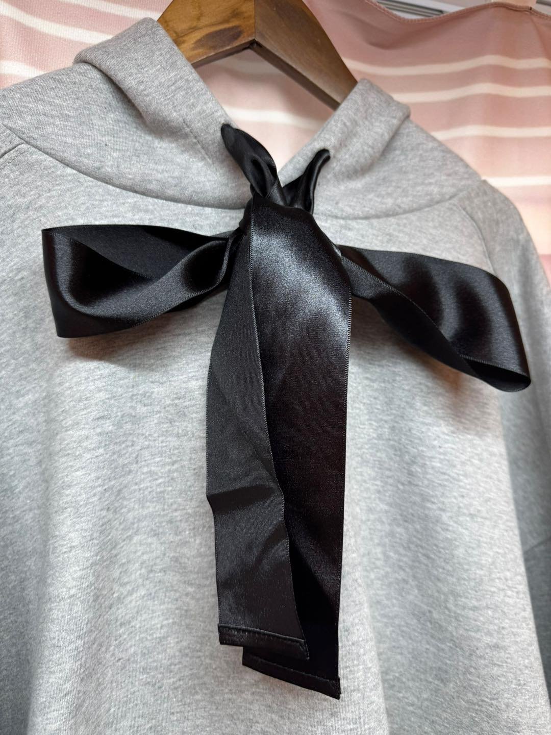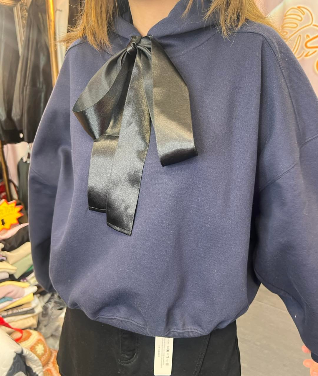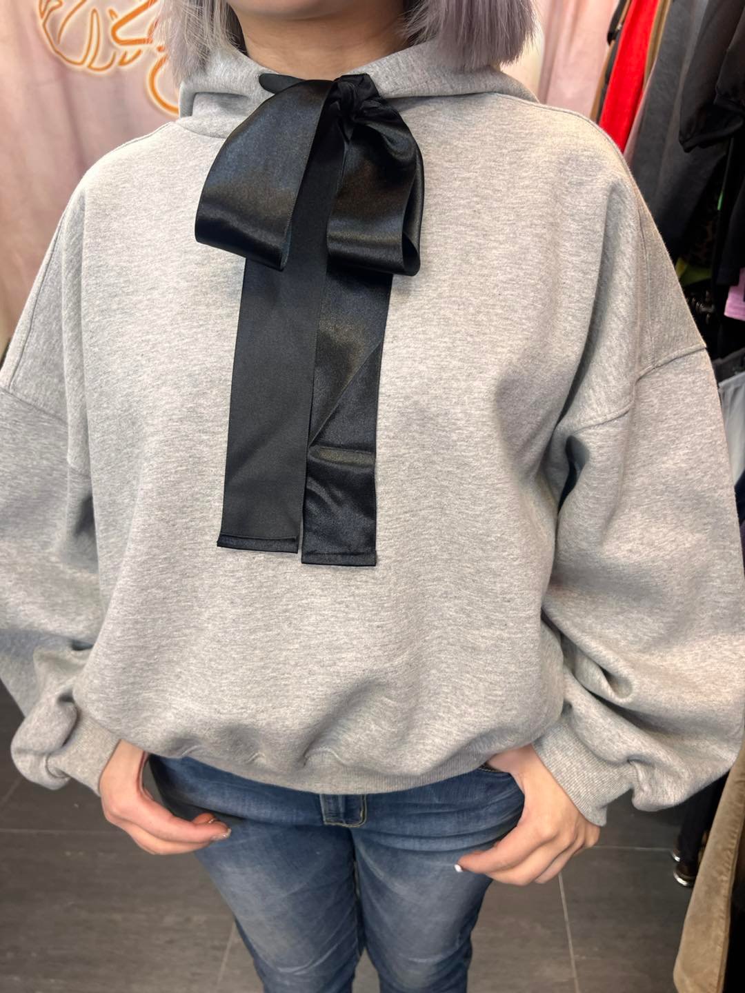 #6746 冬季黑色絲帶蝴蝶結太空棉料衛衣