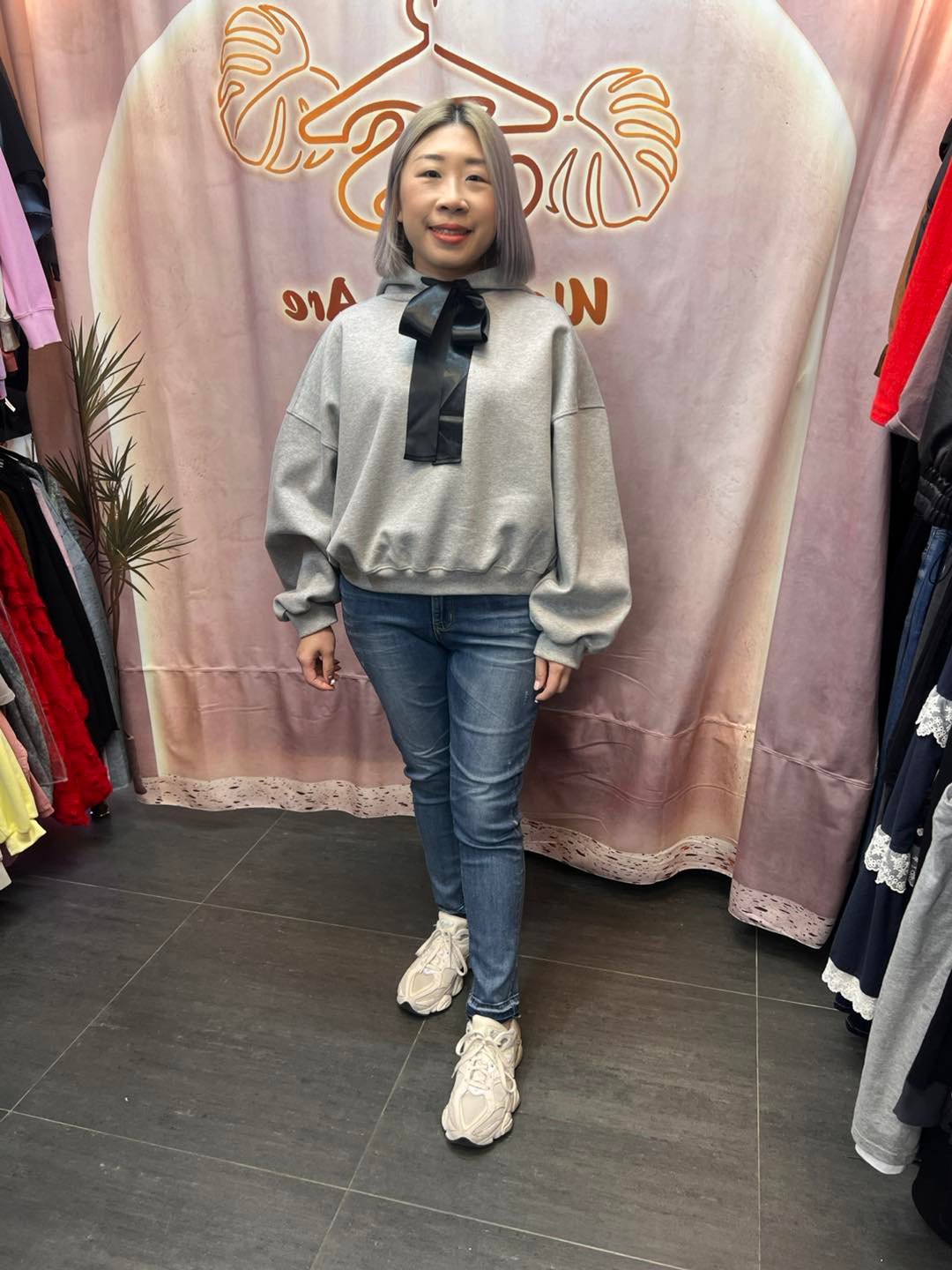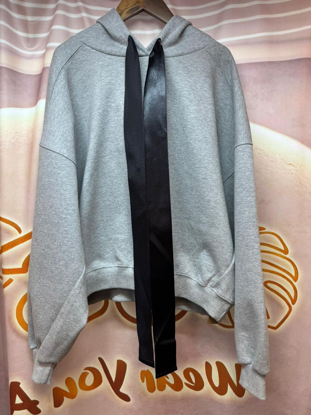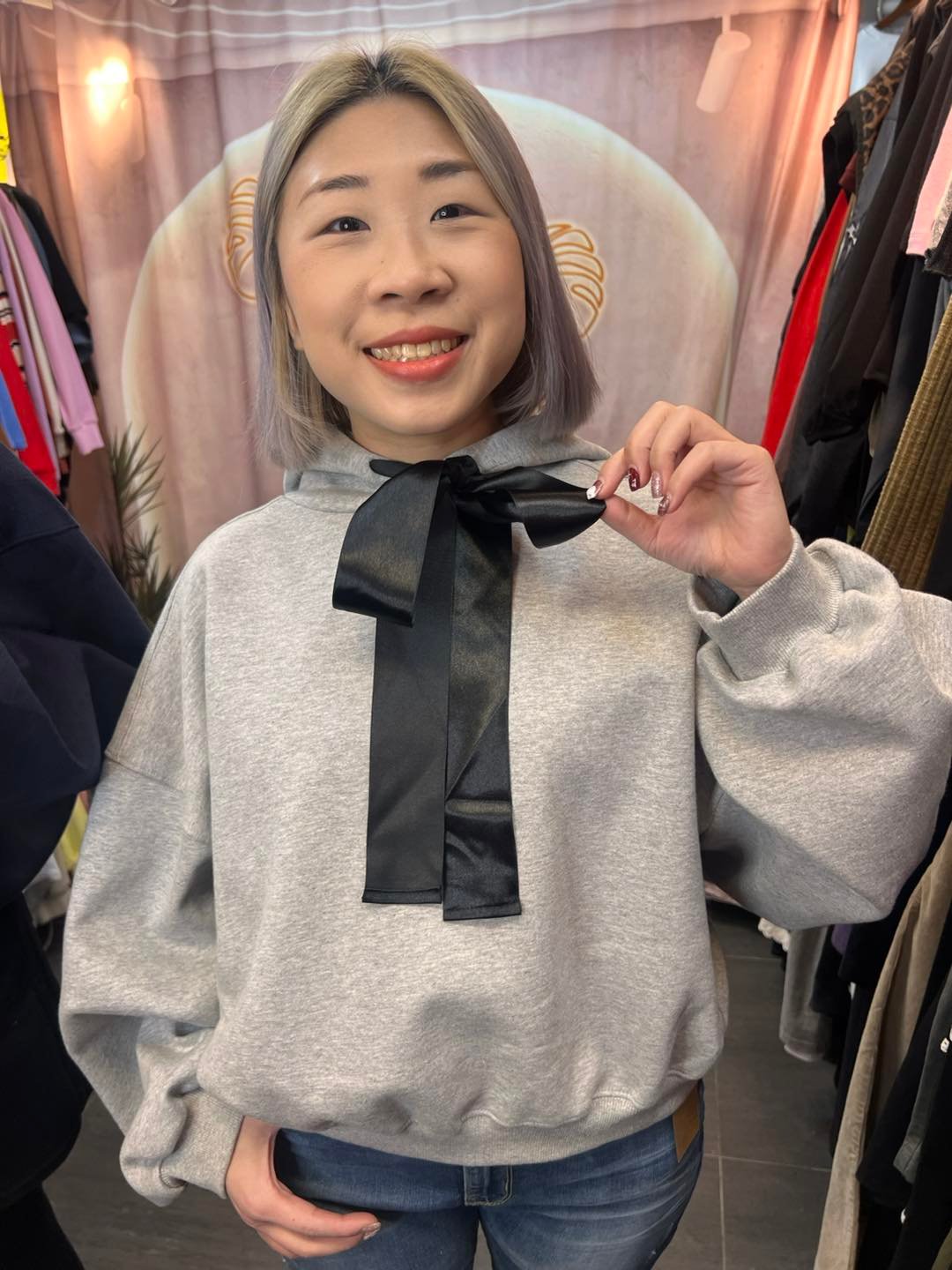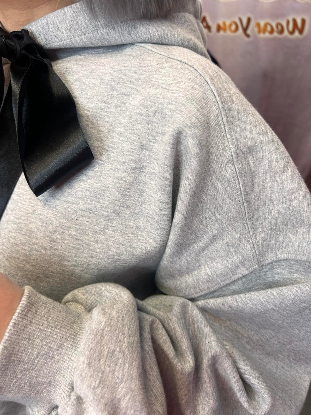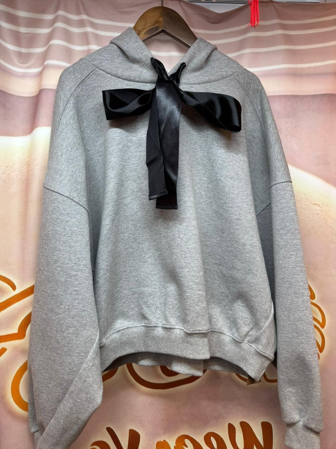 #6746 冬季黑色絲帶蝴蝶結太空棉料衛衣