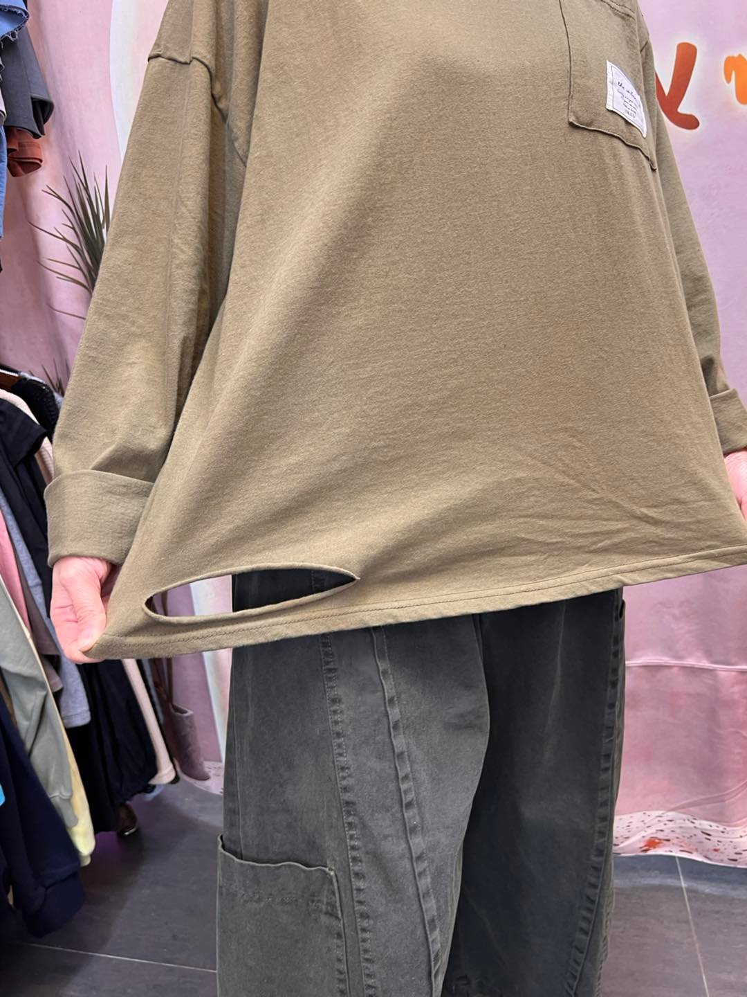 #6757 冬季領口破洞棉料TEE