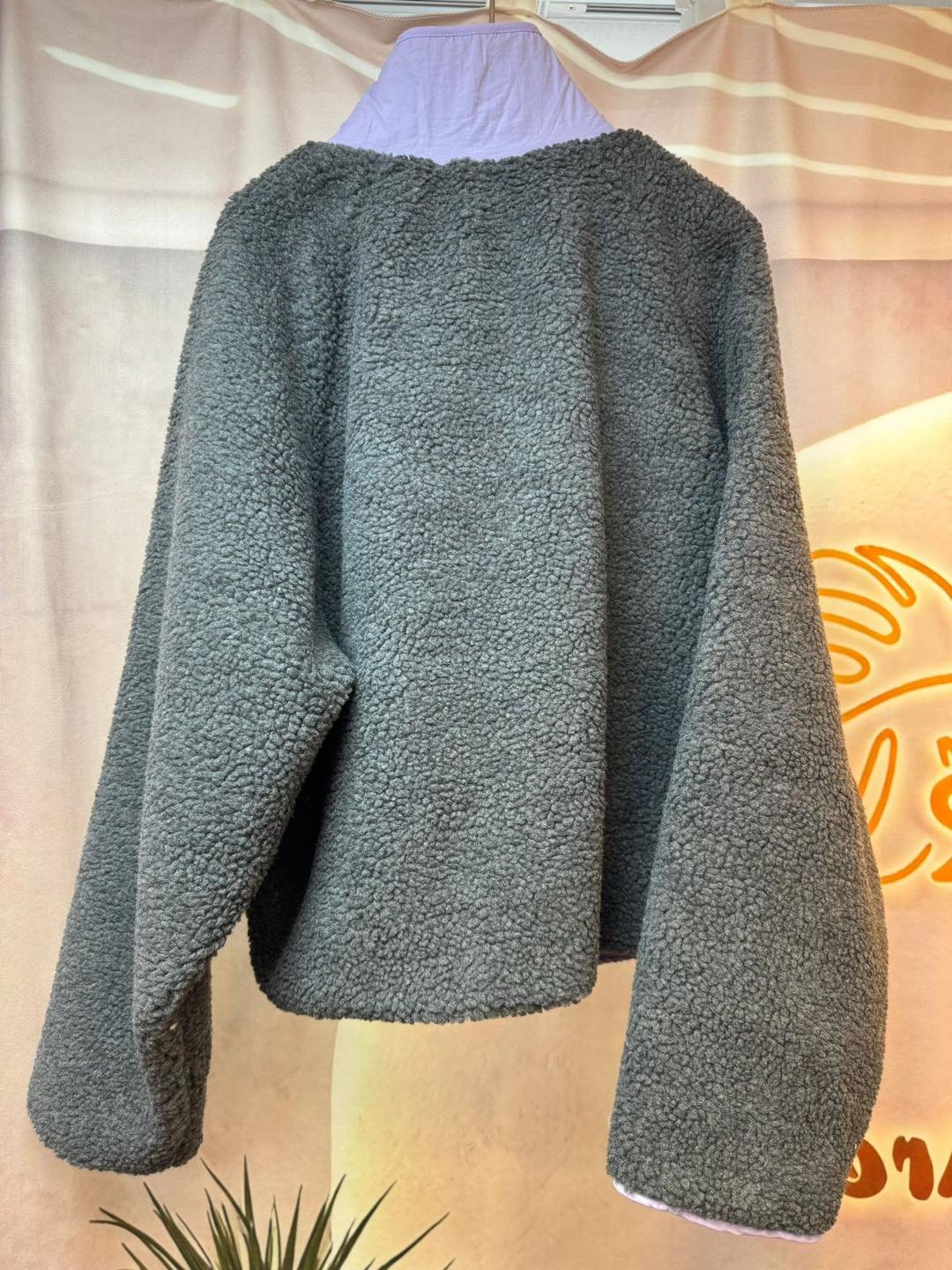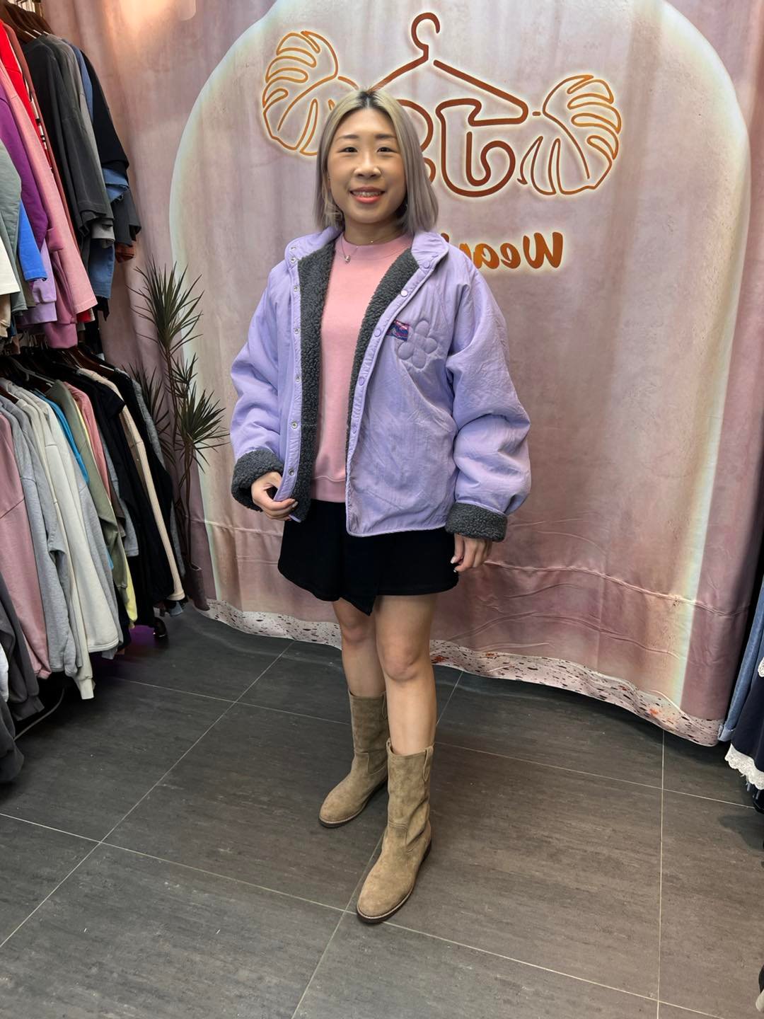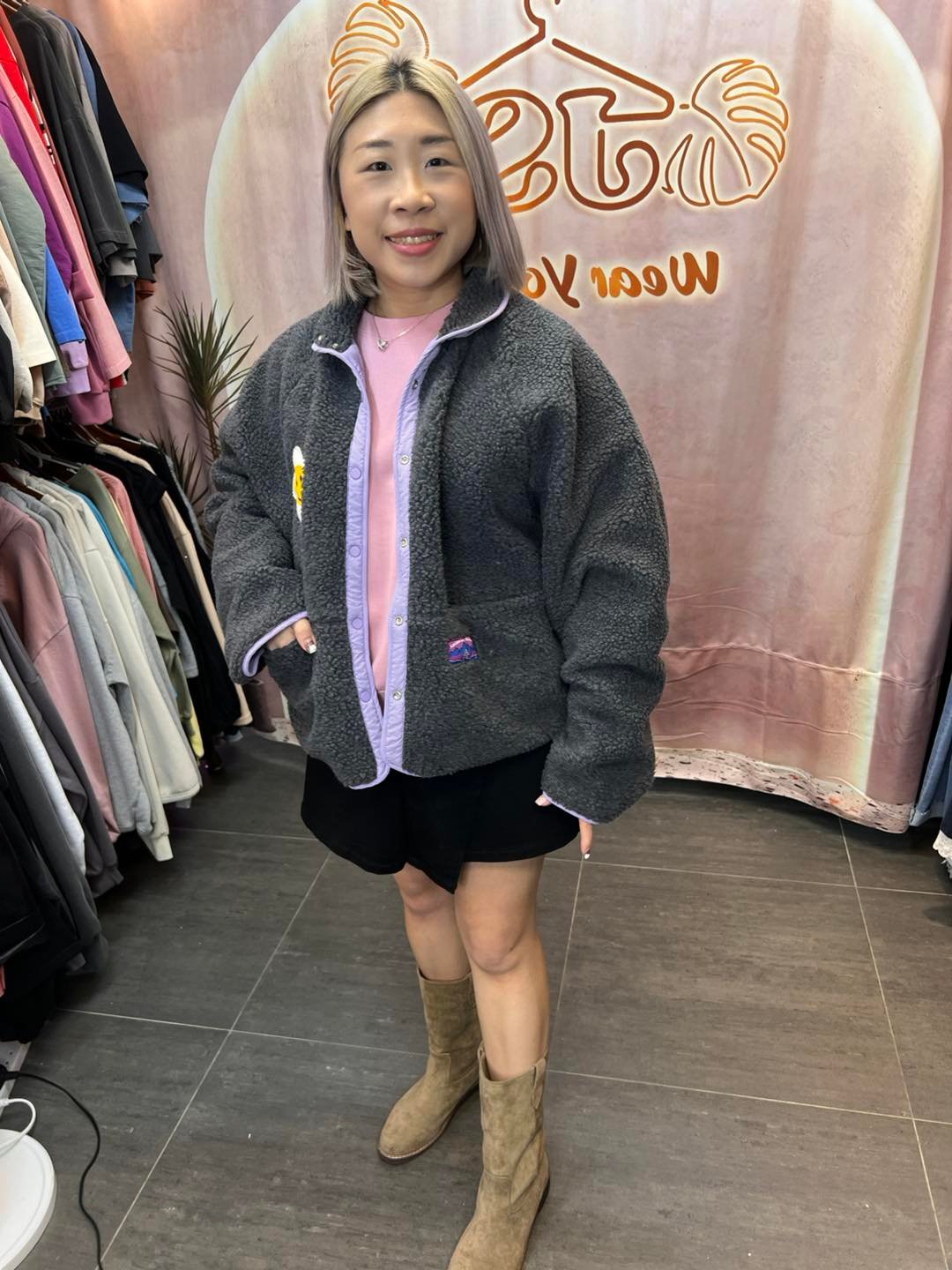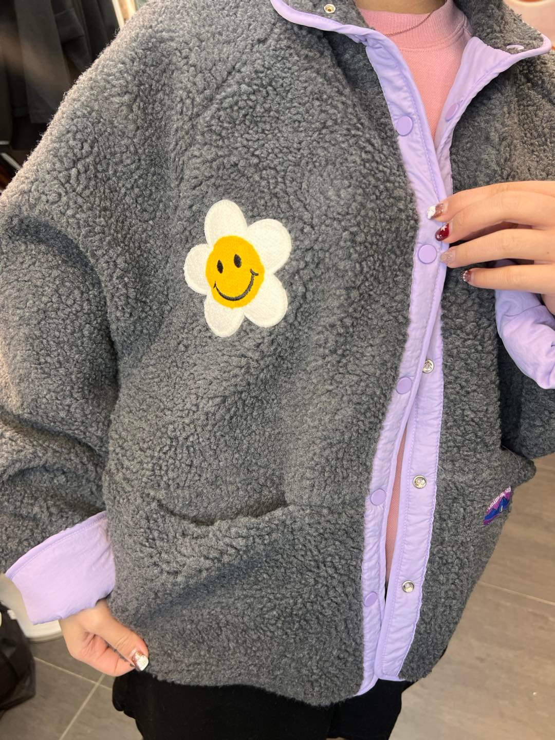 #6762 冬季灰拼紫花花羊羔絨雙面外套