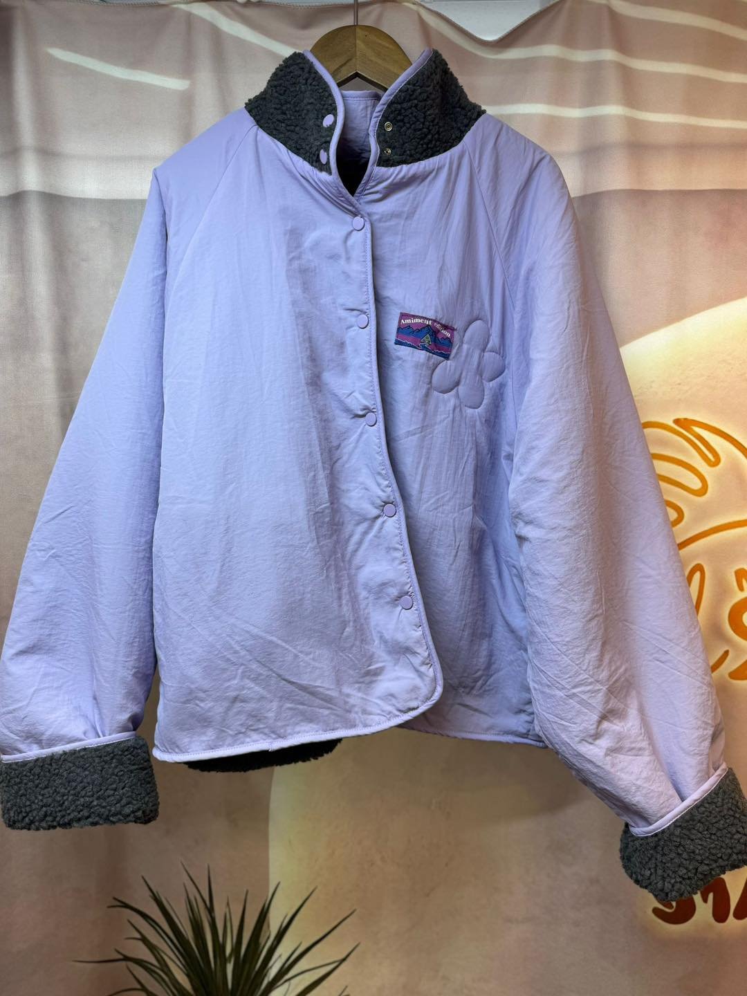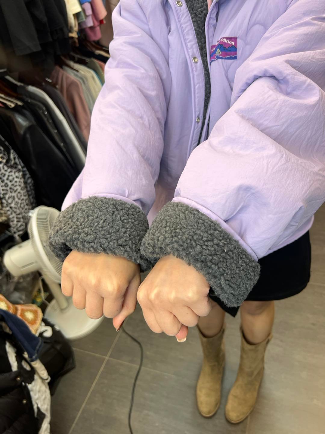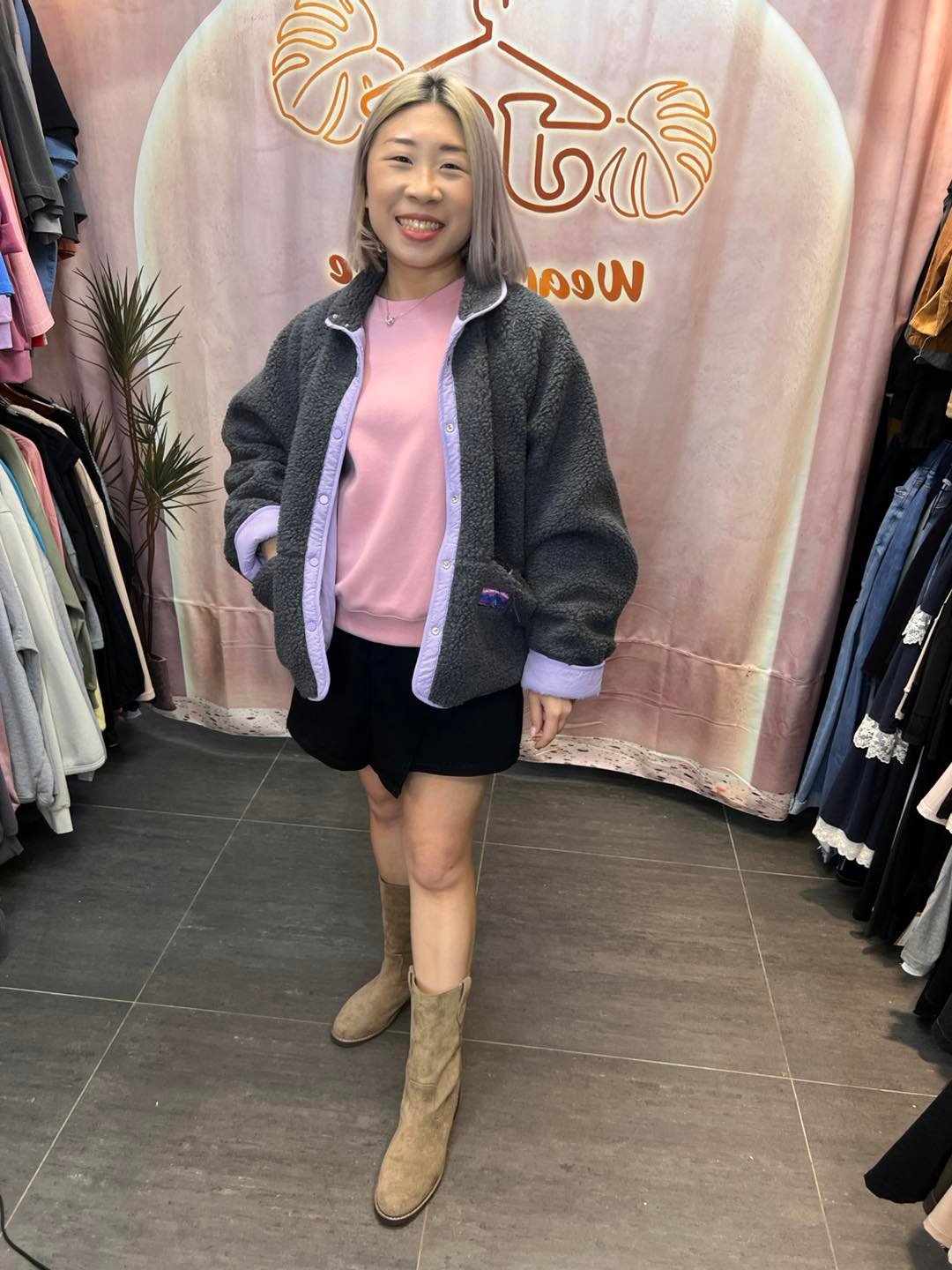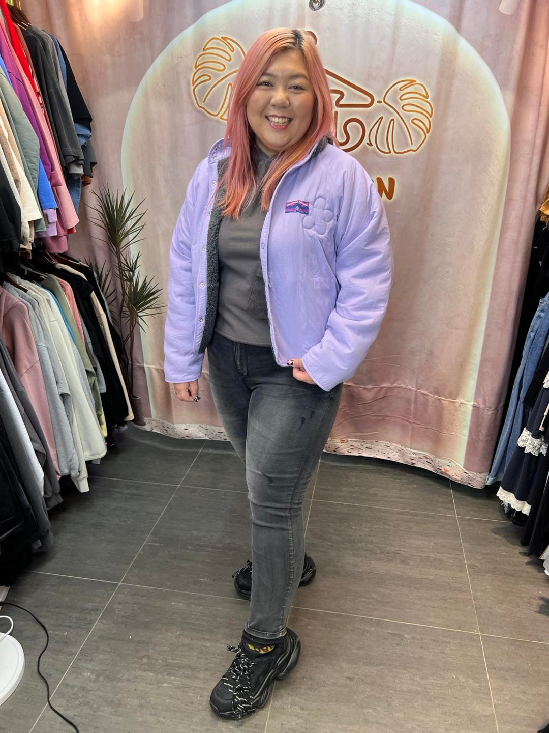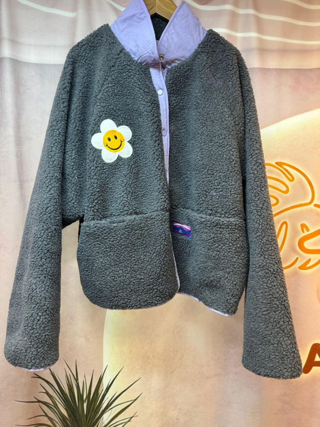#6762 冬季灰拼紫花花羊羔絨雙面外套