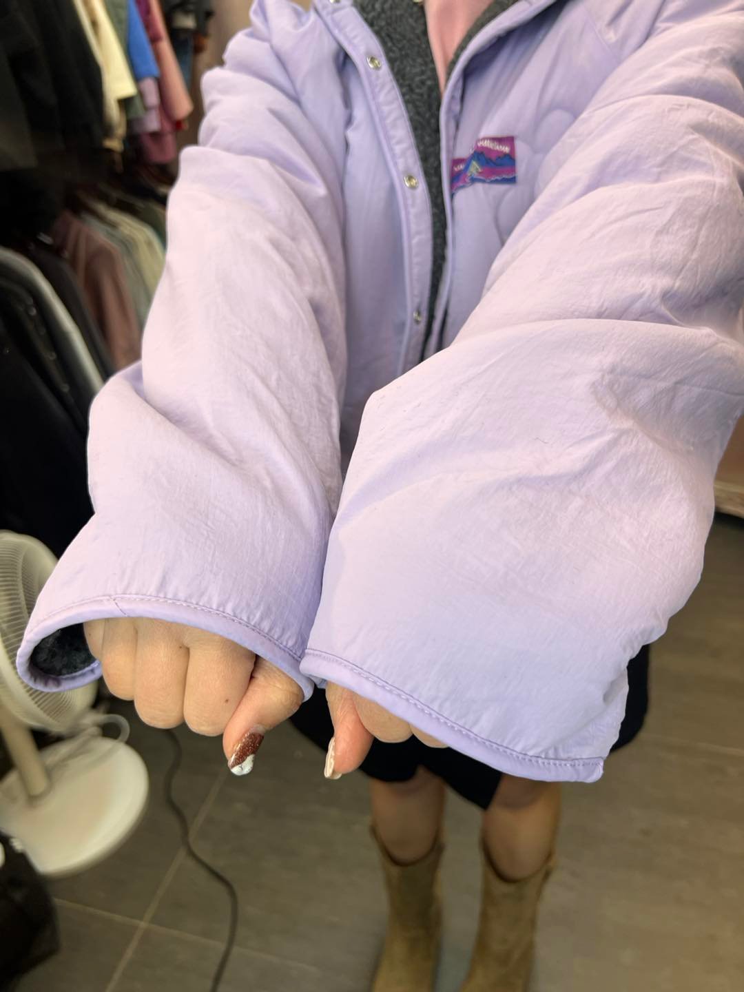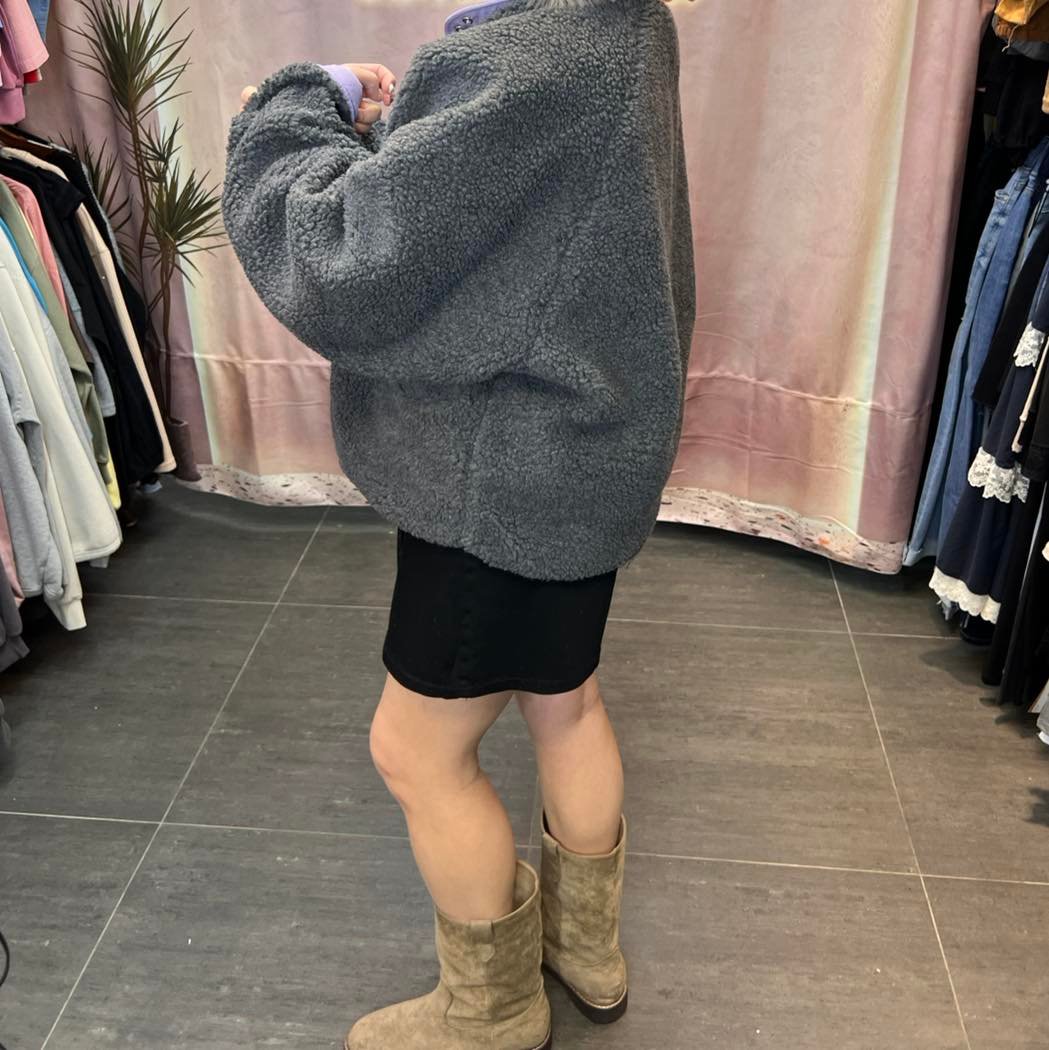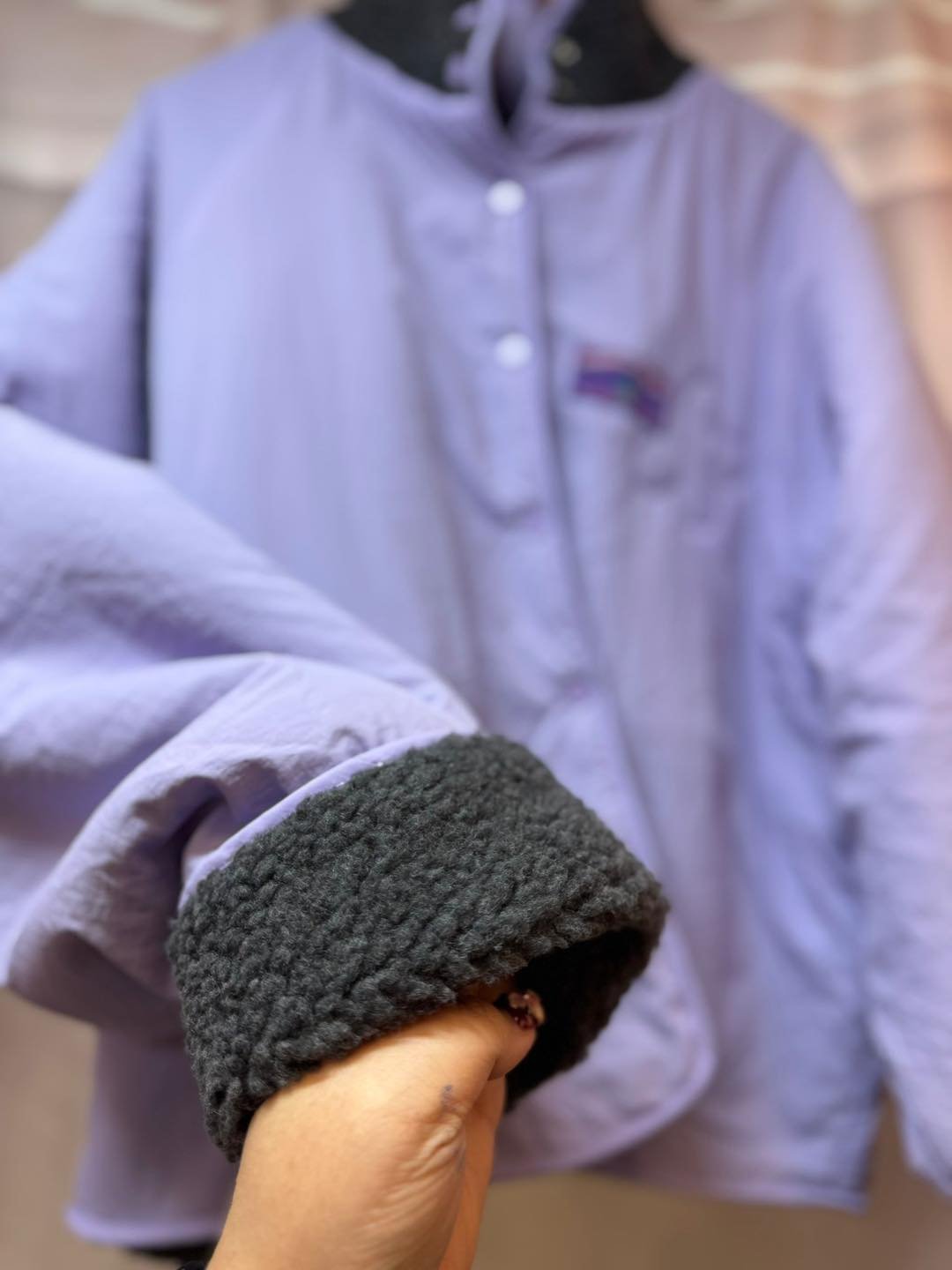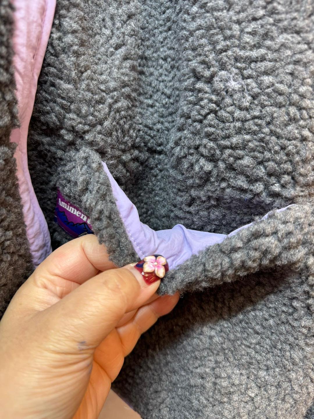 #6762 冬季灰拼紫花花羊羔絨雙面外套