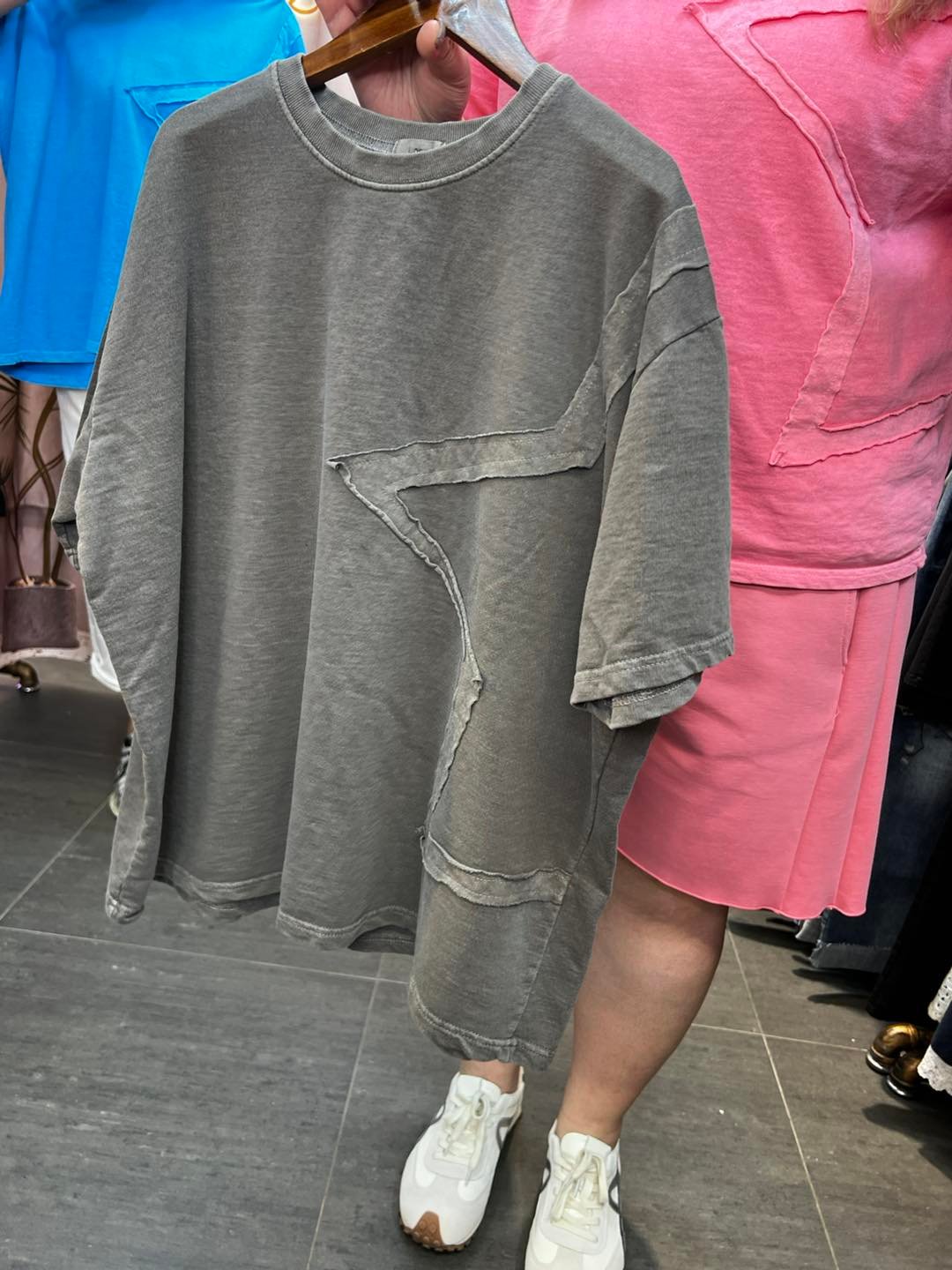 #6881 春夏星星繡章洗水棉料TEE