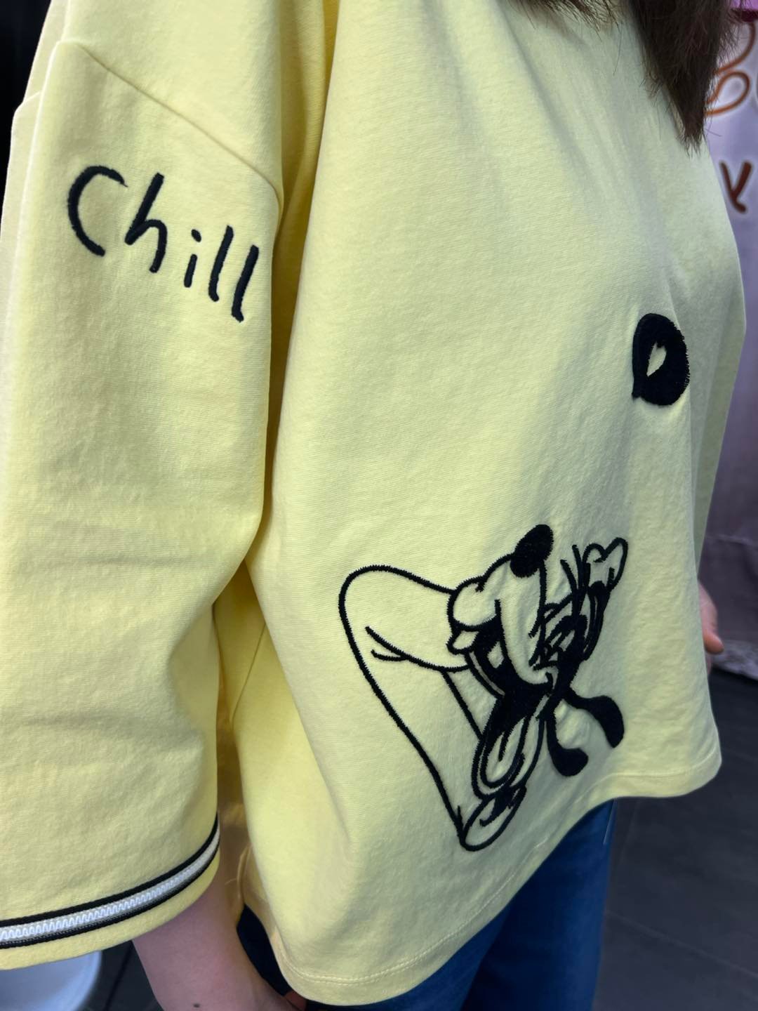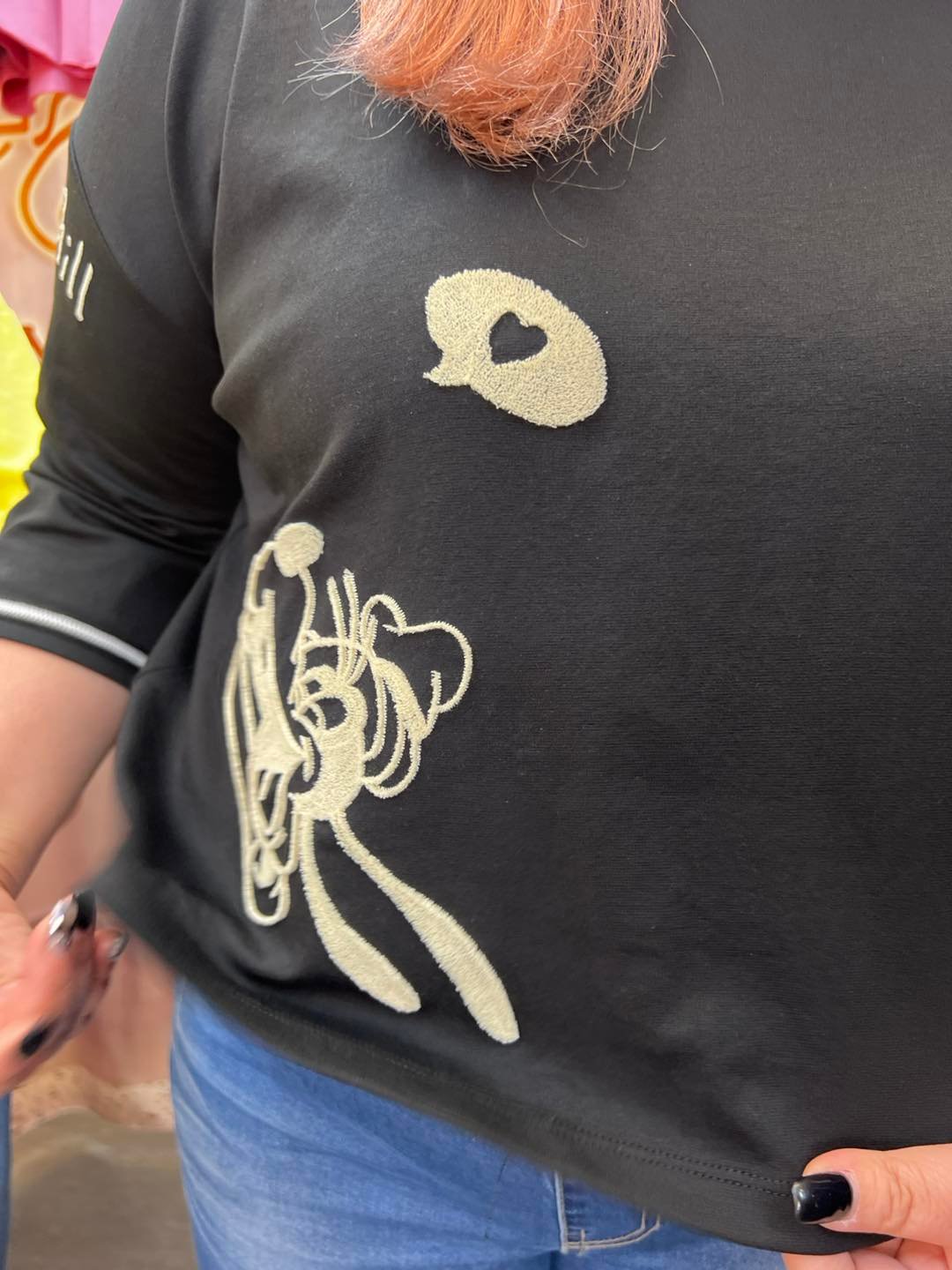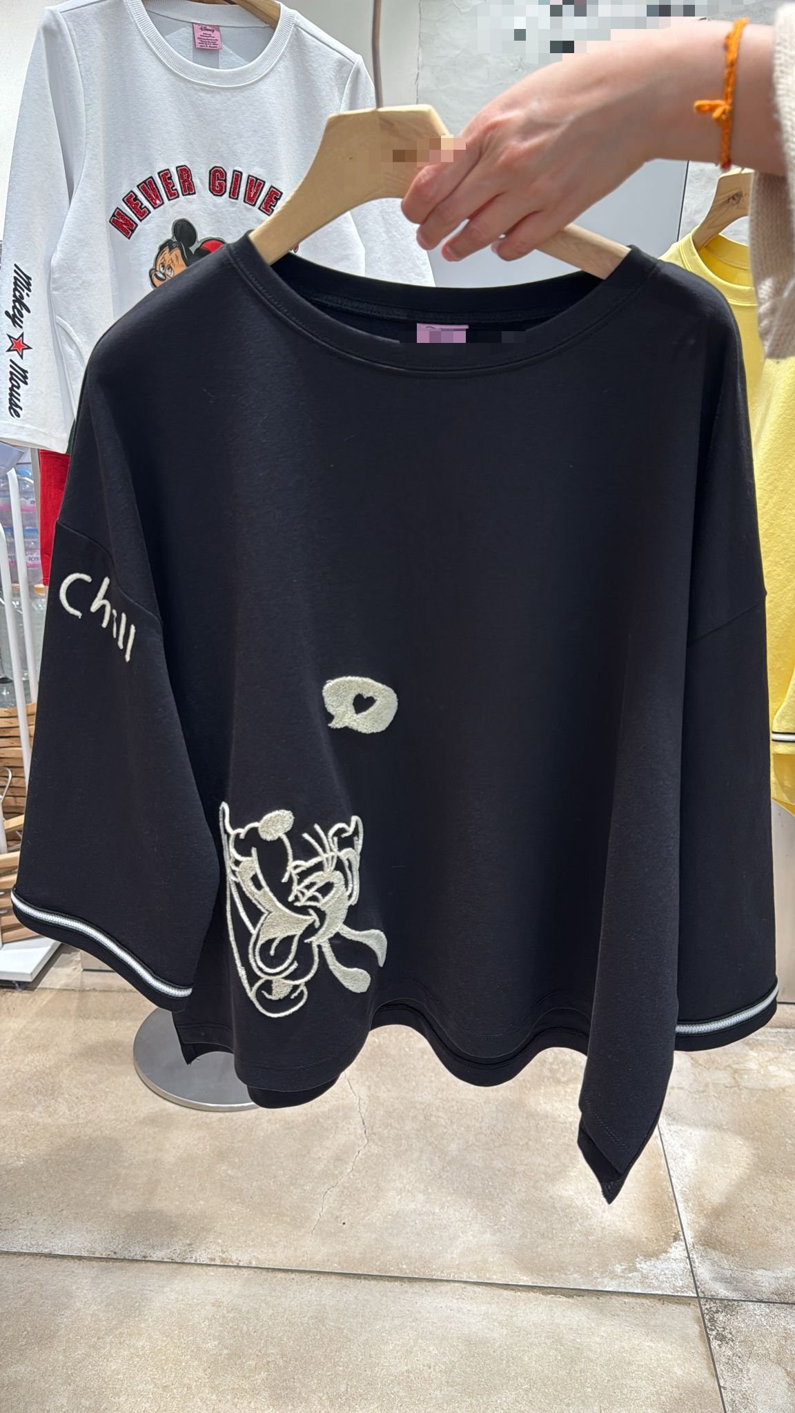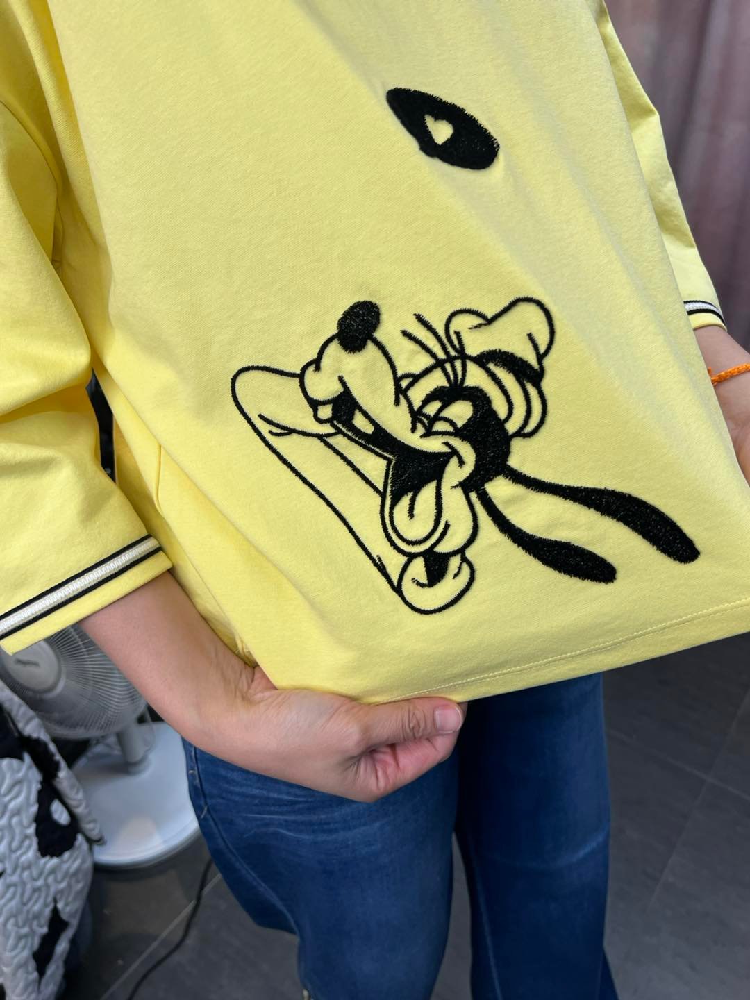 #6888 春夏絨毛繡花高飛中袖棉料TEE