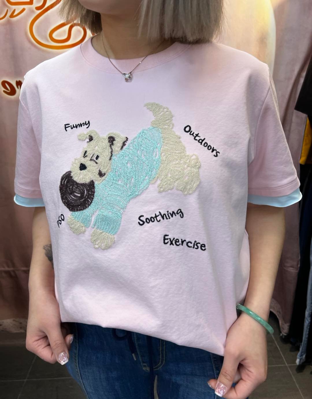 #6890 春夏季繡花狗仔棉料TEE