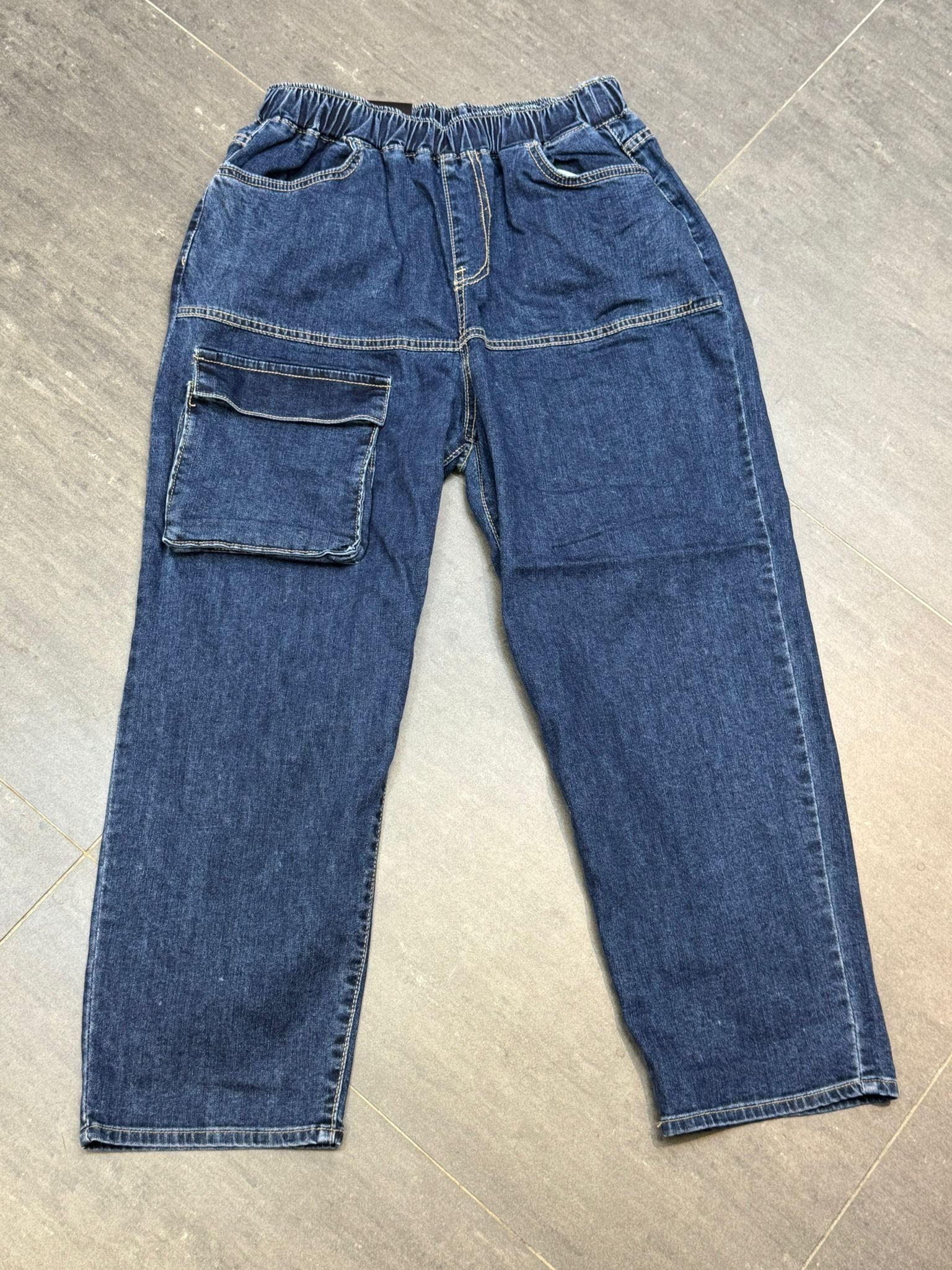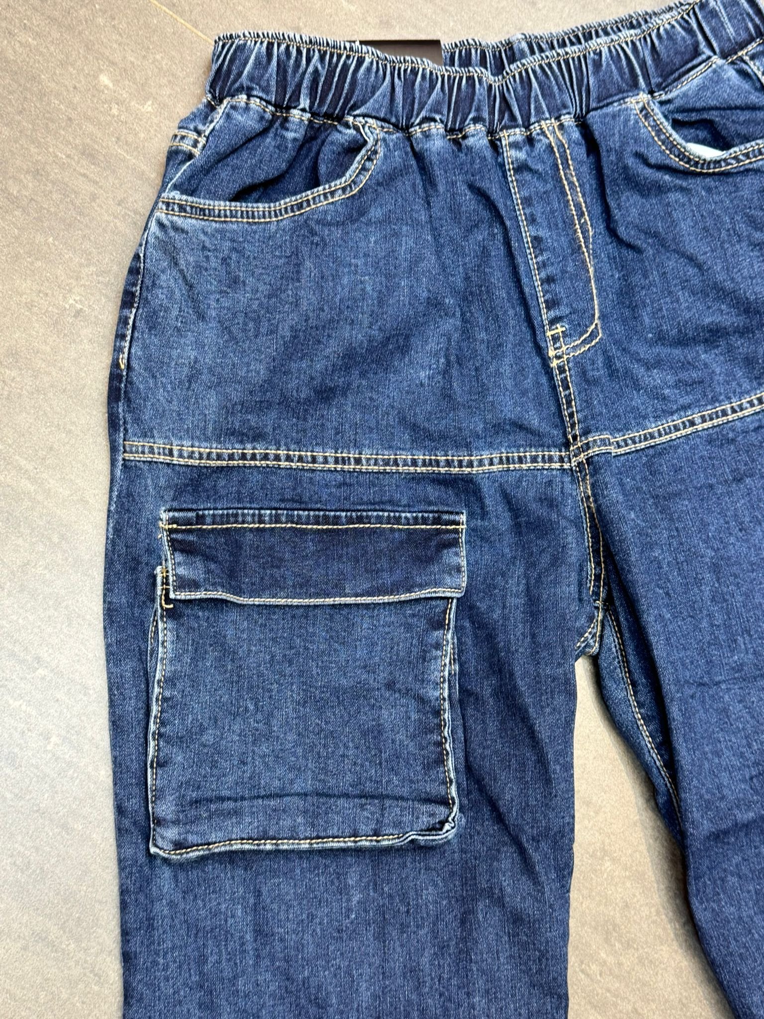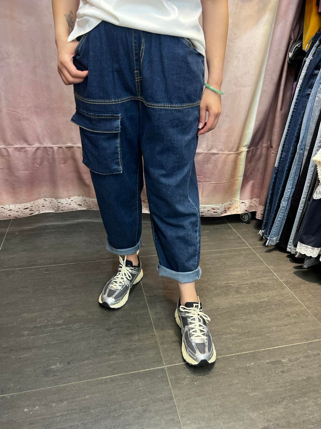 #6923 夏季深藍色前冚袋蘿蔔形牛仔褲 (獨家款)