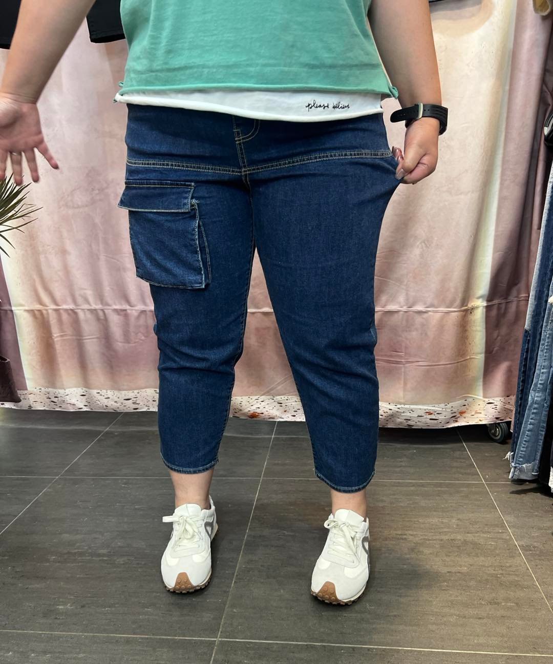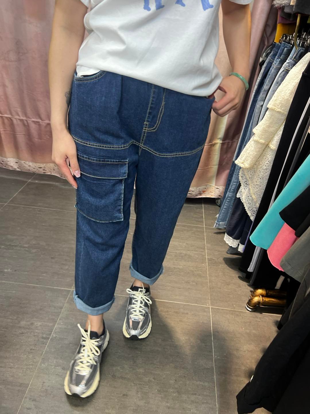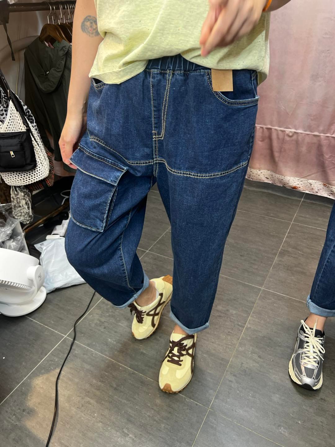 #6923 夏季深藍色前冚袋蘿蔔形牛仔褲 (獨家款)