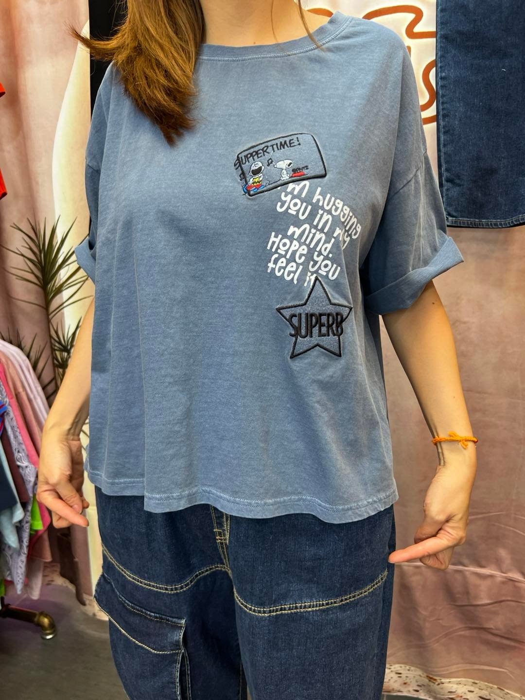 #6930 夏季Snoopy 車花章棉料TEE