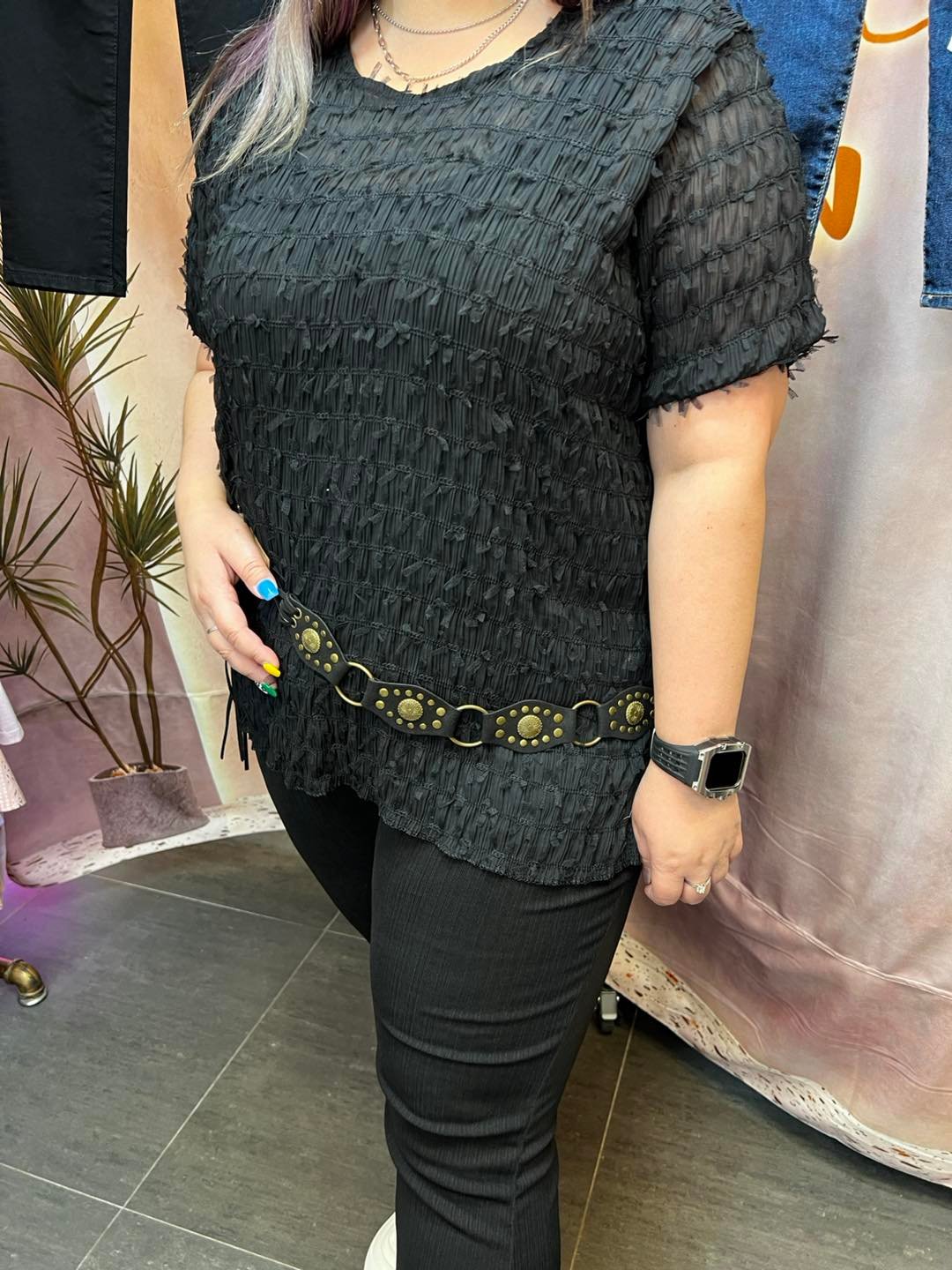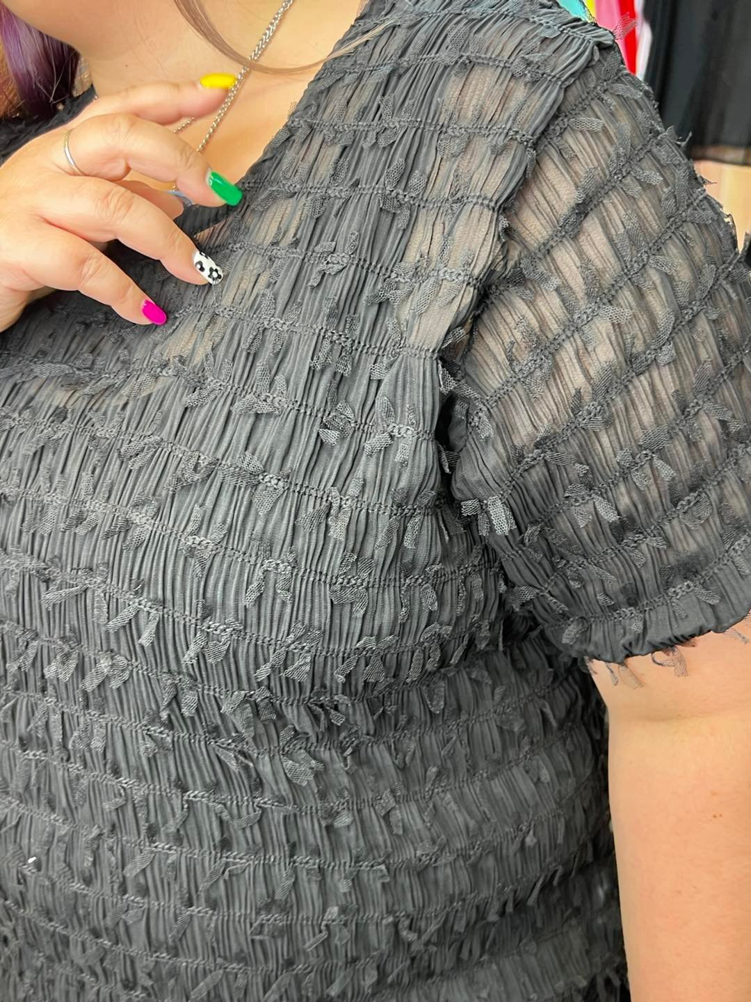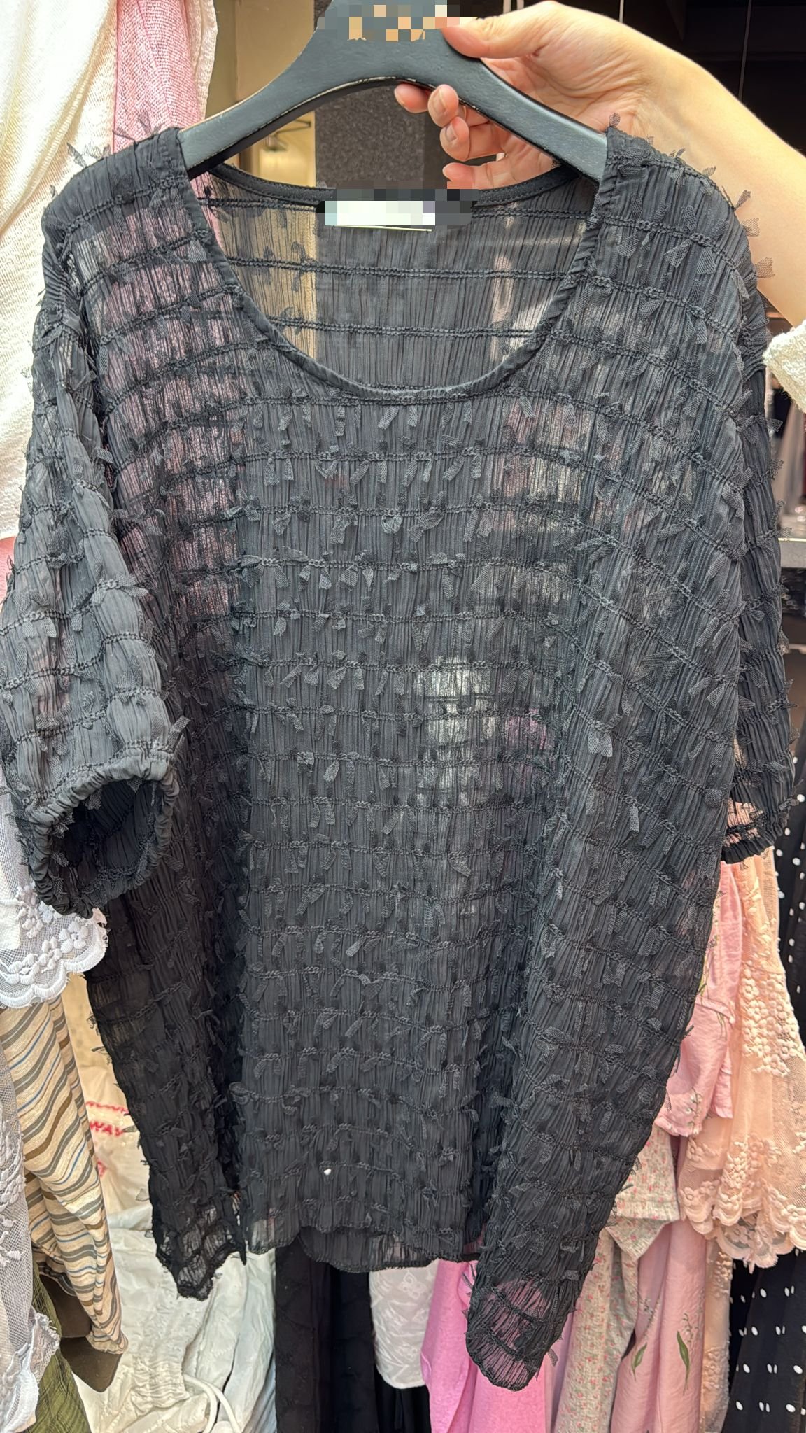#6956 夏季黑色雪紡長身上衣