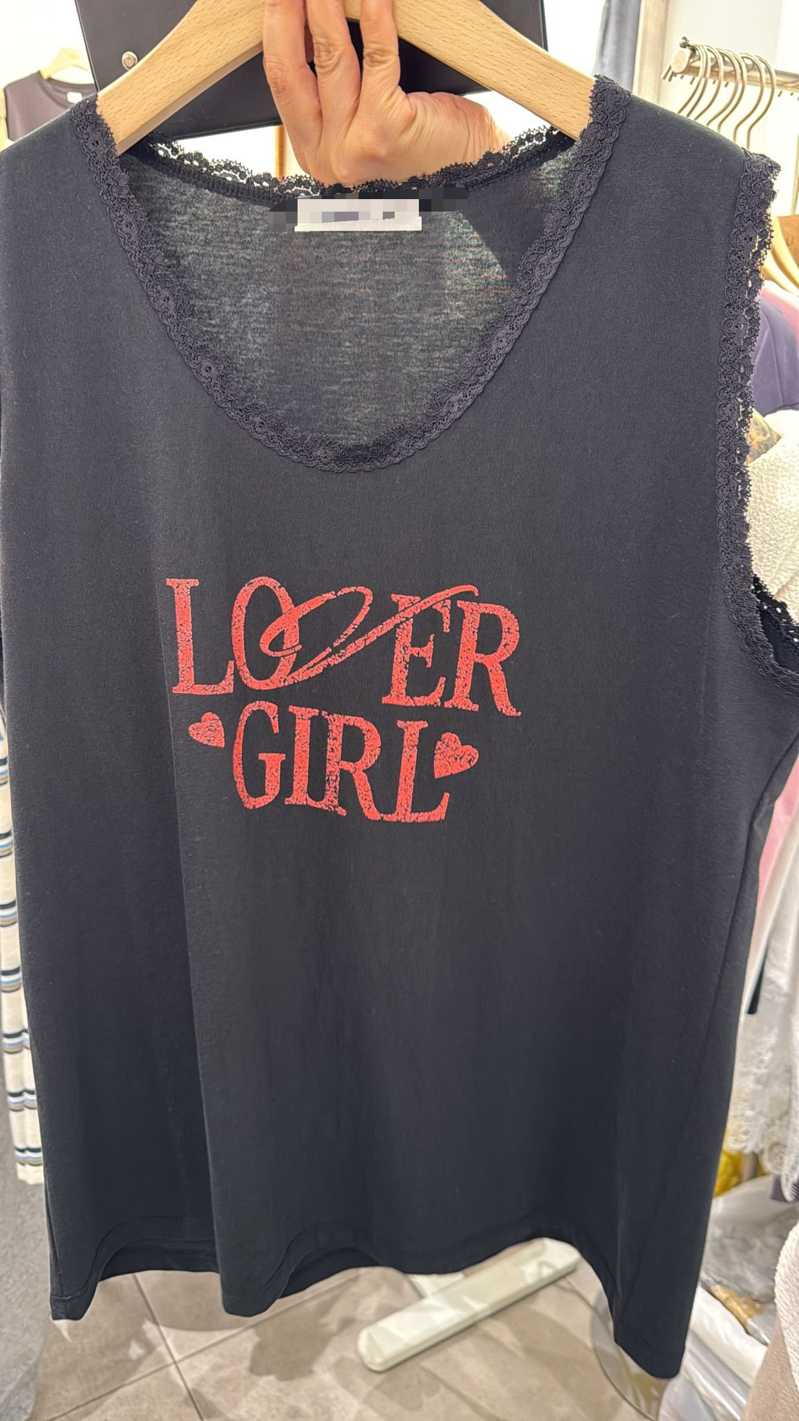 #6965 夏季LOVER GIRL黑色喱士邊背心