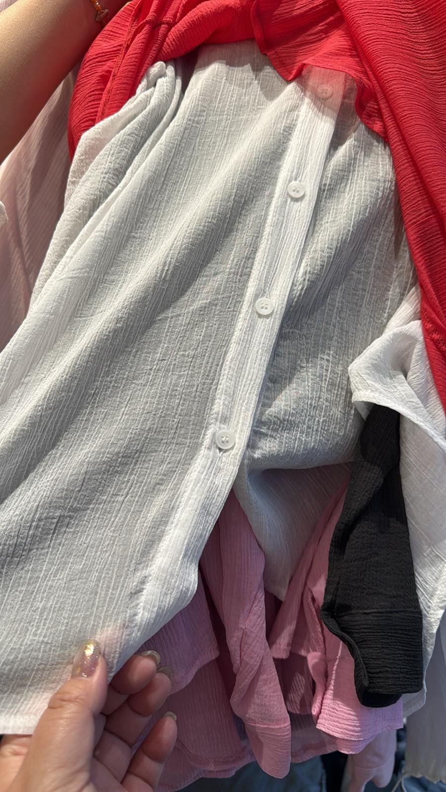 #6976 夏季縐紋布玻璃恤衫