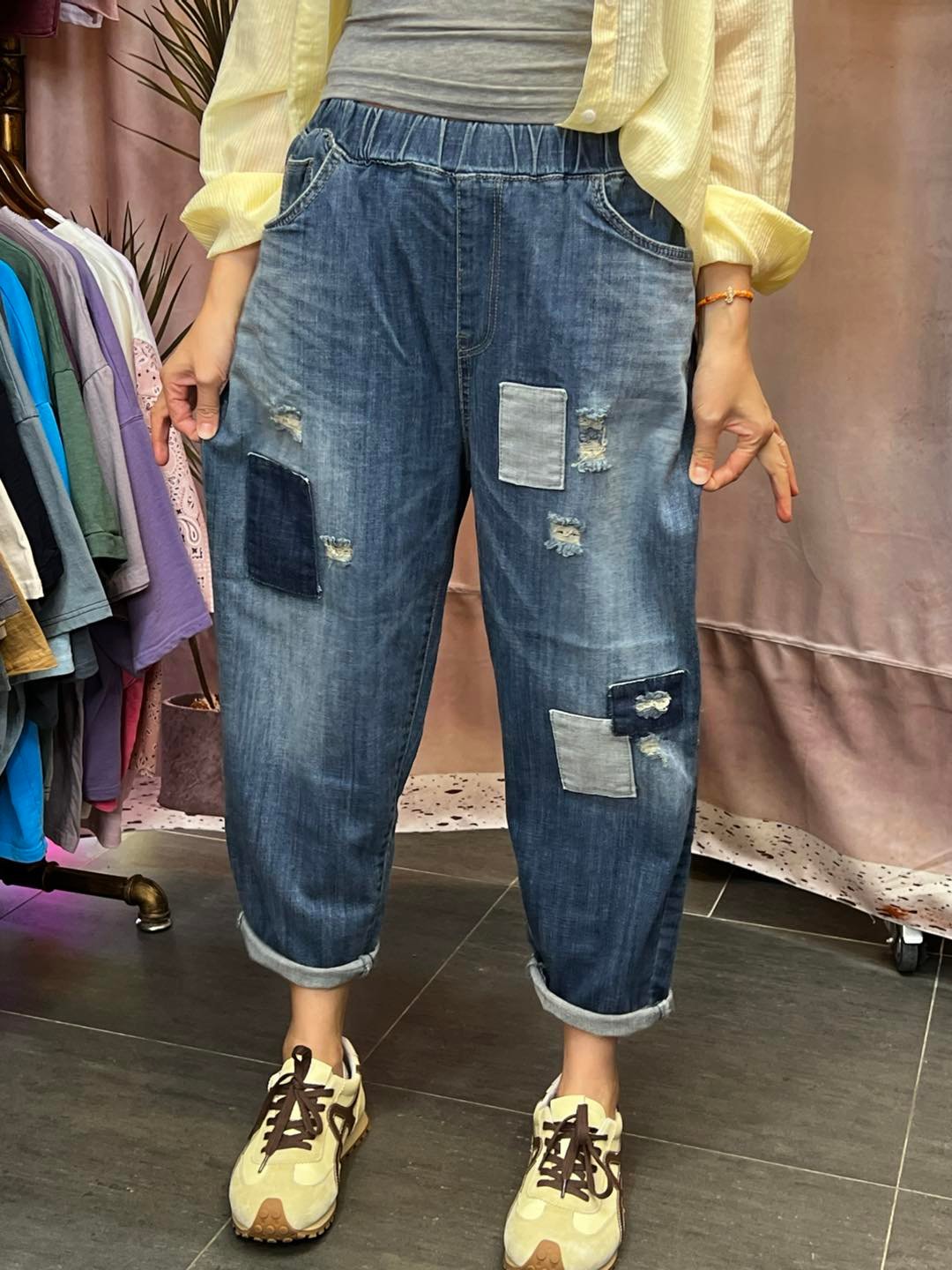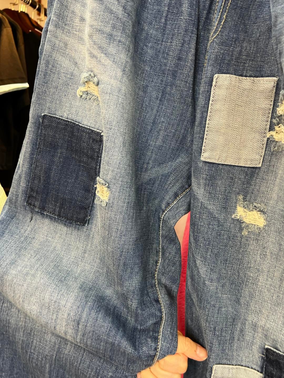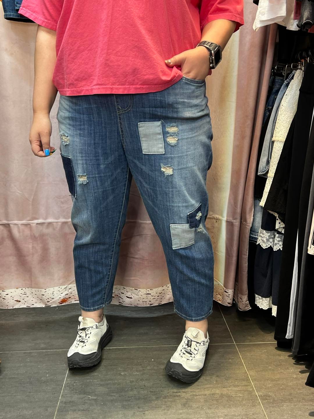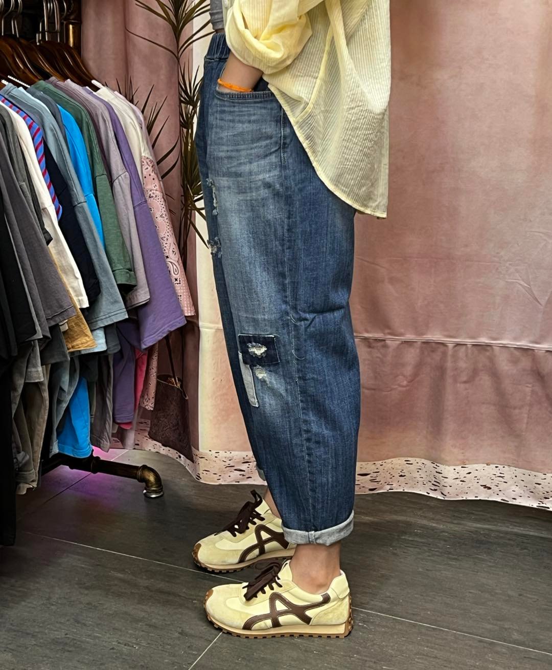 #7025 夏季洗水貼布蘿蔔形牛仔褲